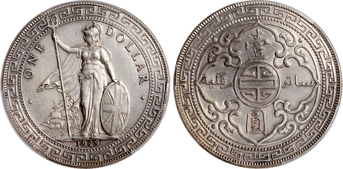 Great Britain, silver Trade dollar, 1929/1B, PCGS AU Detail, harshly cleaned, rare overdate.