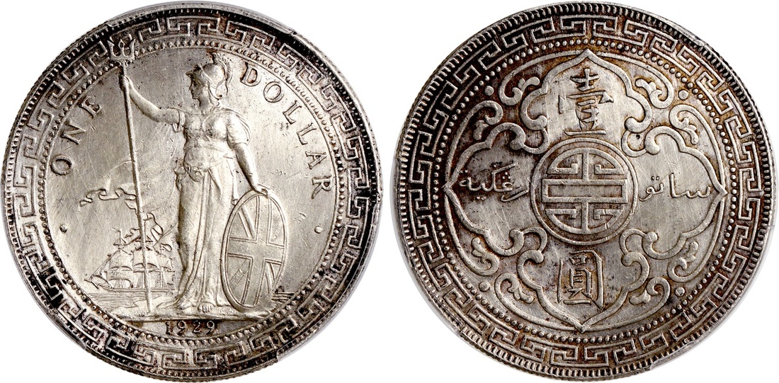 Great Britain, silver Trade dollar, 1929/1B, PCGS AU Detail, harshly cleaned, rare overdate.