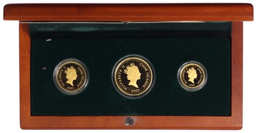 2000年庫克島龍年金幣一組3枚,15, 30及60元,共重17.5克,連盒及證書,編號1240