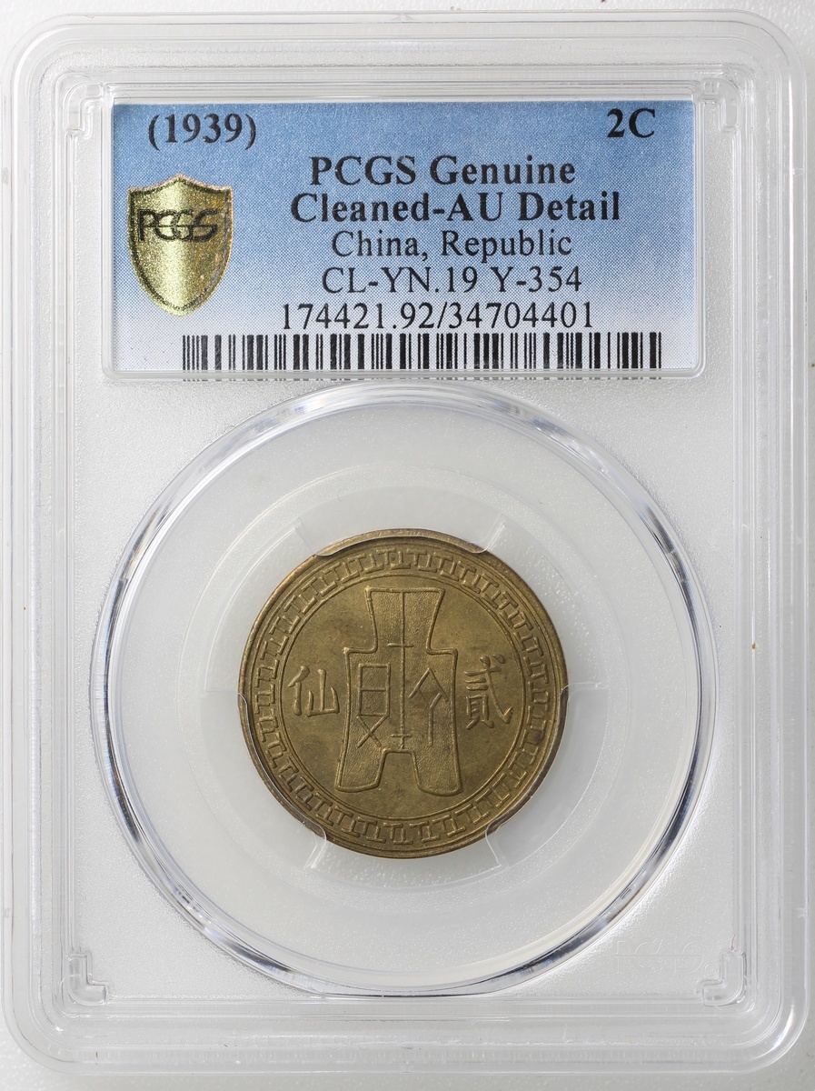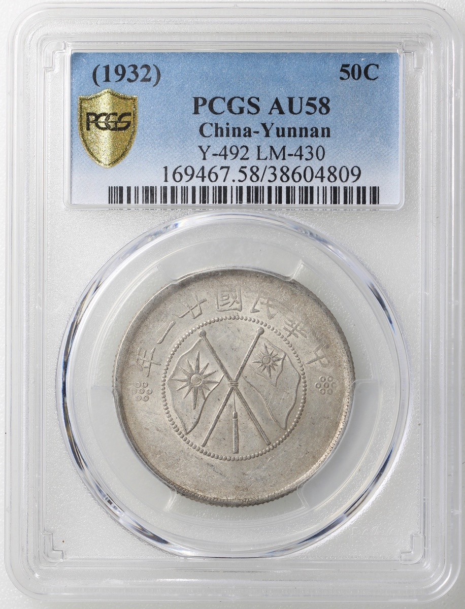 (x) Republic of China, brass 2 cents, 1939, also Yunnan Province, silver 50 cents, 1932,