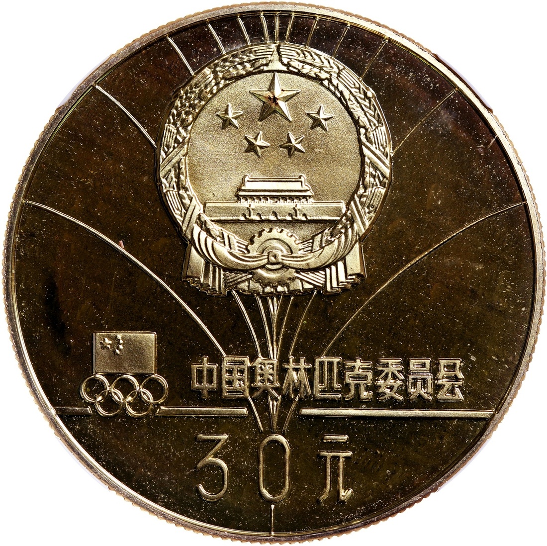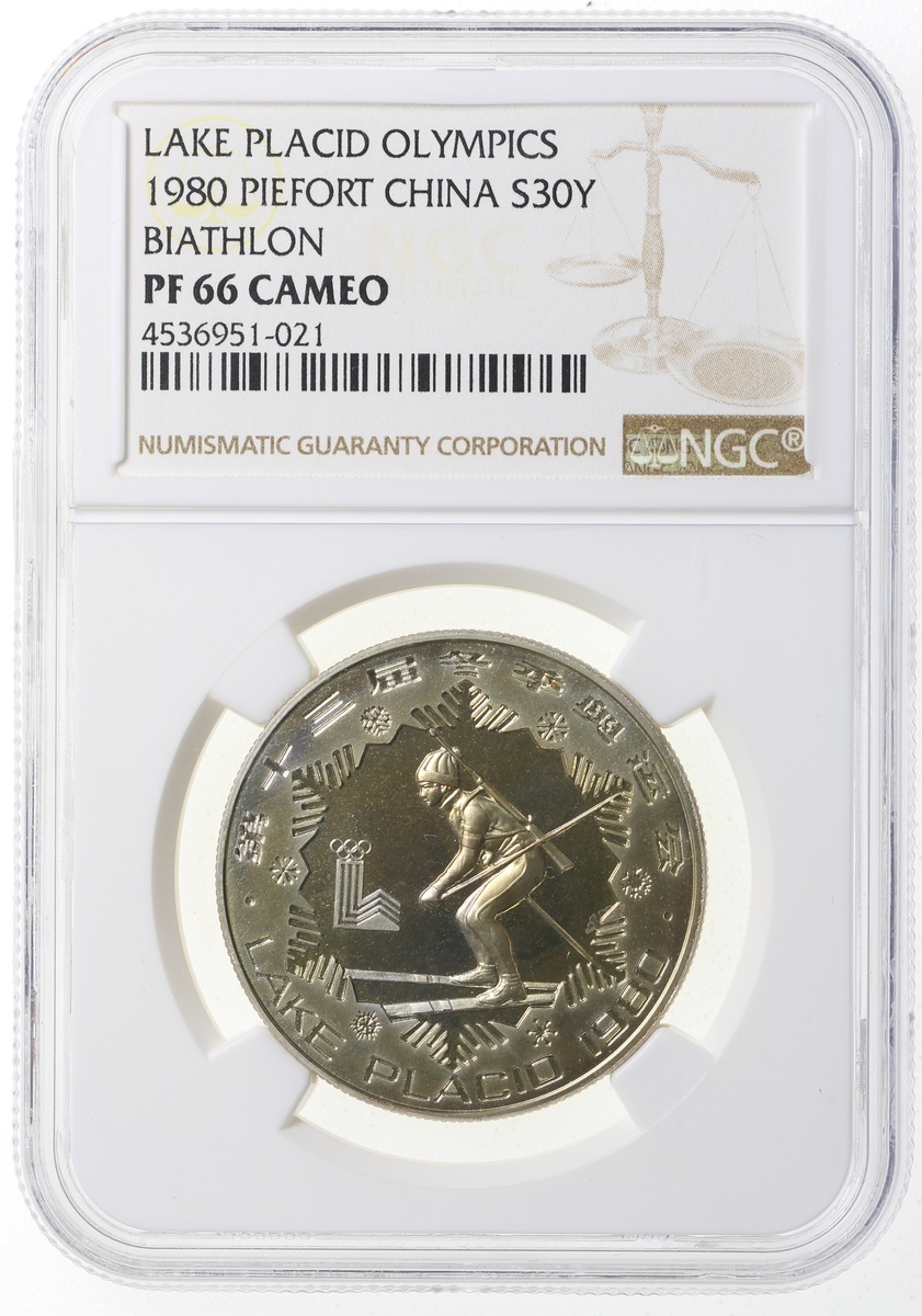(x) People's Republic of China, silver 30 yuan, piedfort, 1980, 'Biathlon', for the Winter Olympics in Lake Placid,