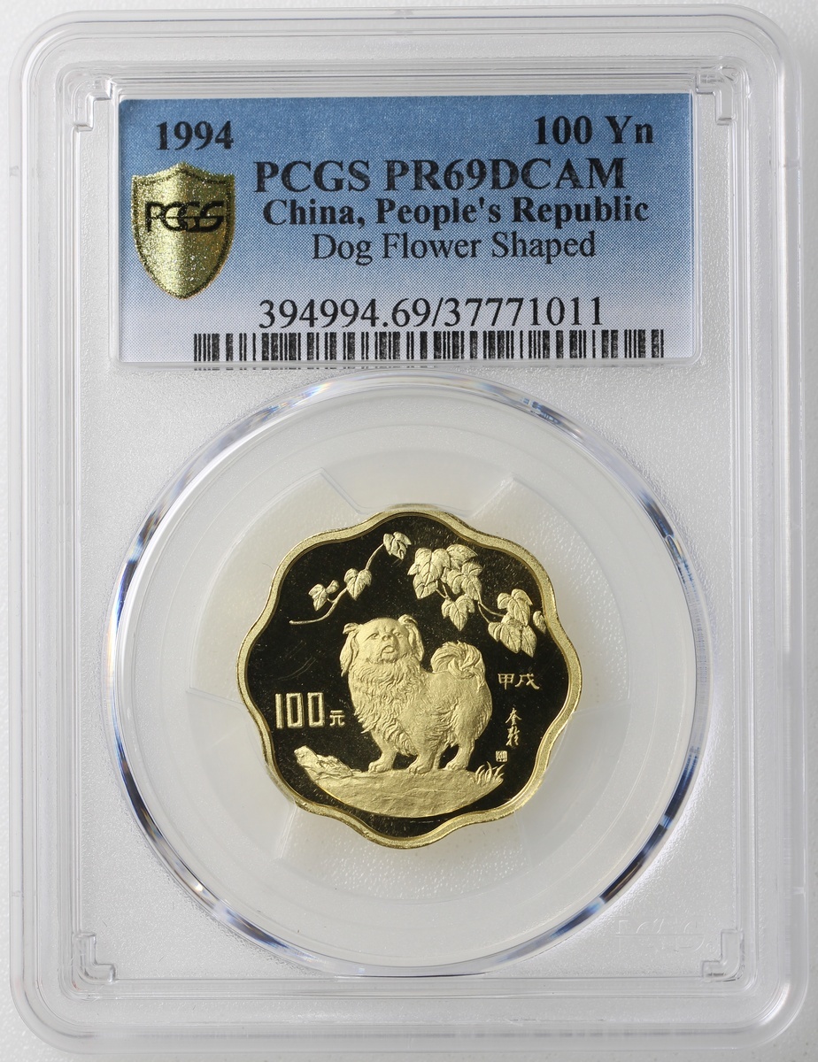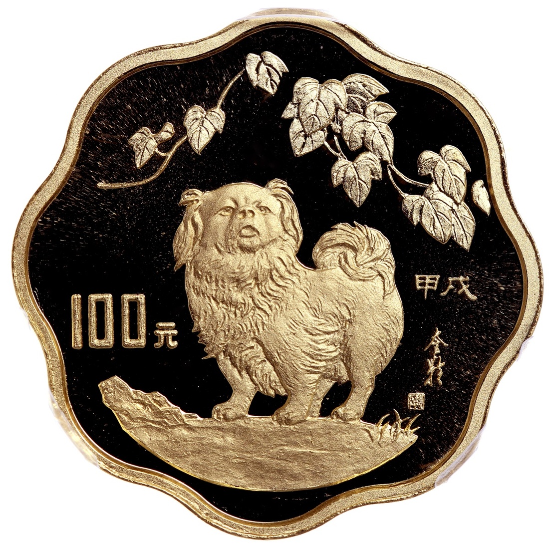 (x) People's Republic of China, gold 100 yuan, 1994, flower shaped, Year of the Dog, 1/2 oz. gold,