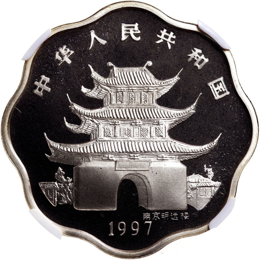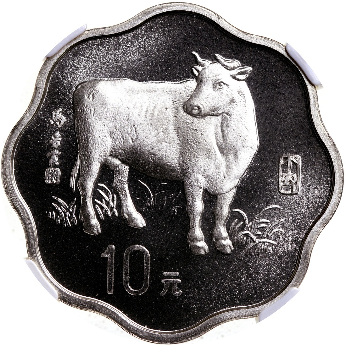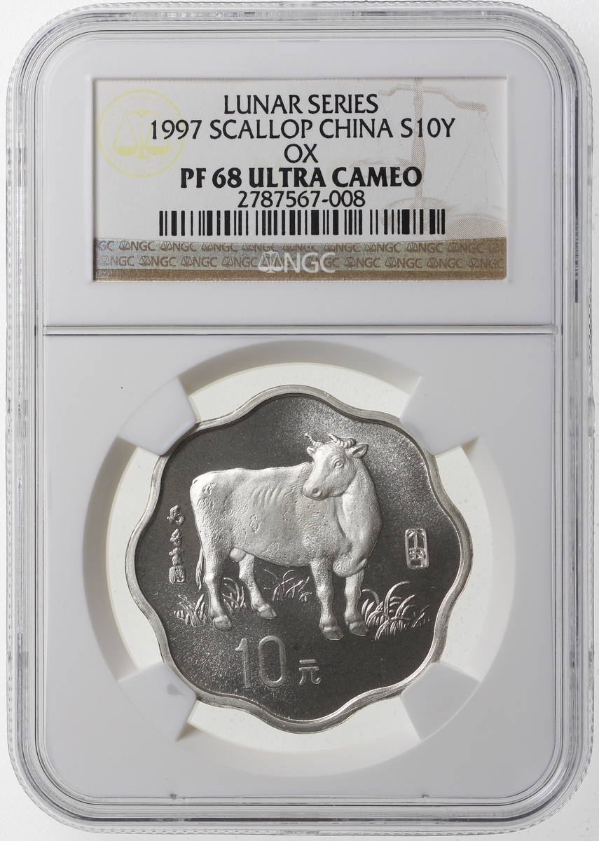 (x) People's Republic of China, silver 10 yuan, 1997, scallop shaped, Year of the Ox, 2/3 oz,