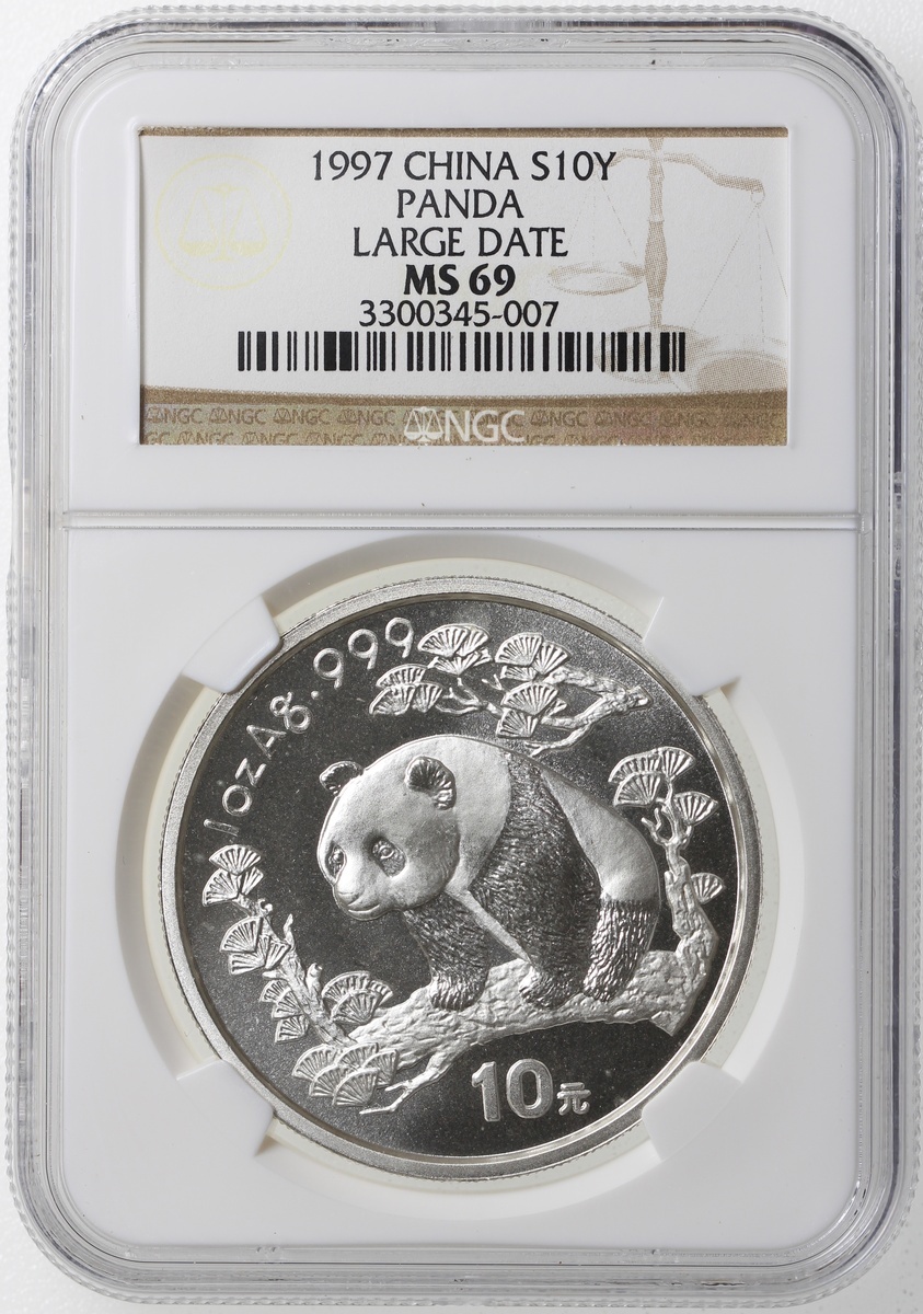 (x) People's Republic of China, silver 10 yuan, 1997, 'Panda', Large Date, NGC MS69.