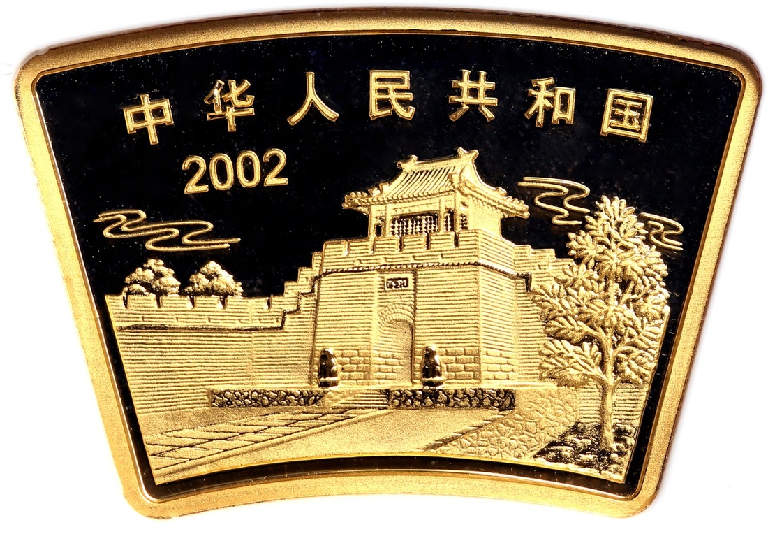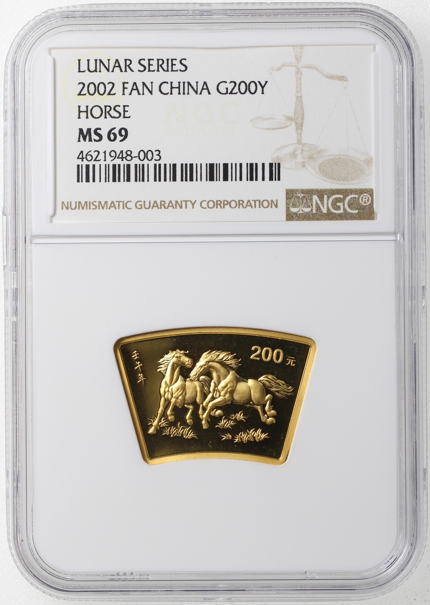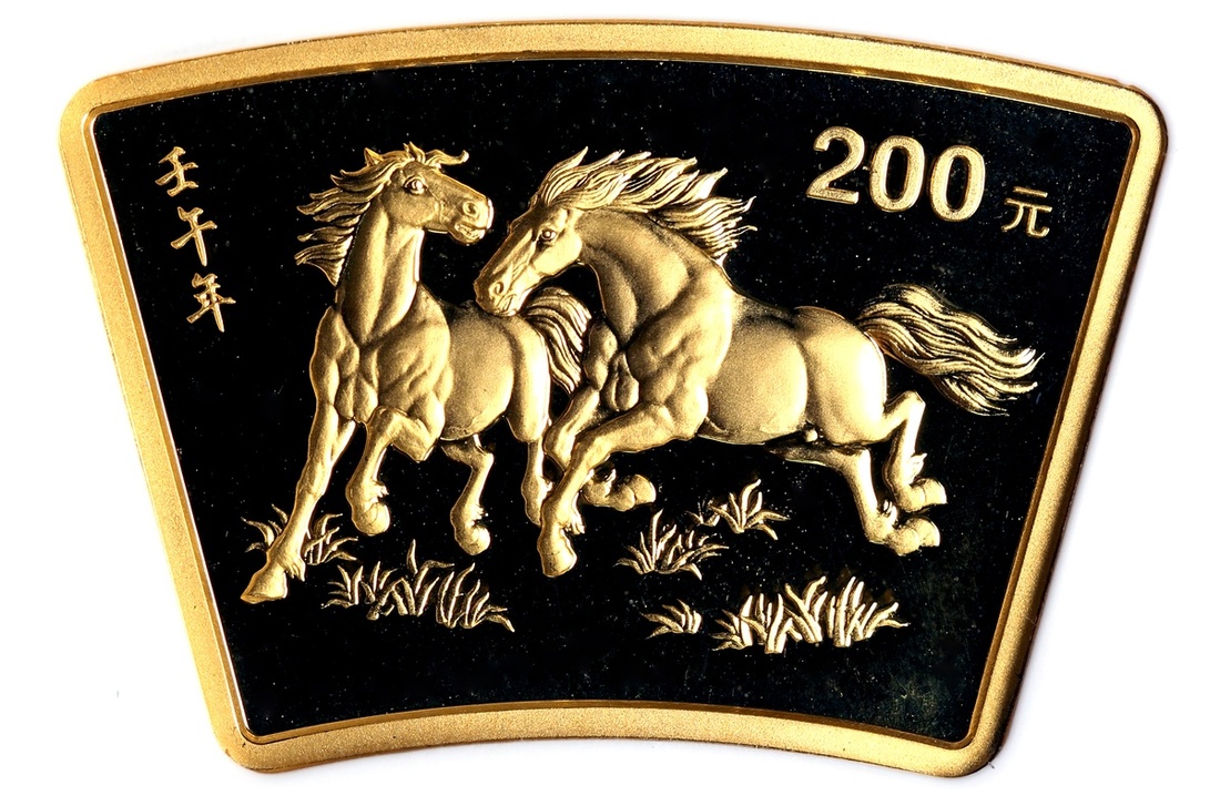 (x) People's Republic of China, gold 200 yuan, 2002, fan shaped, Year of the Horse,