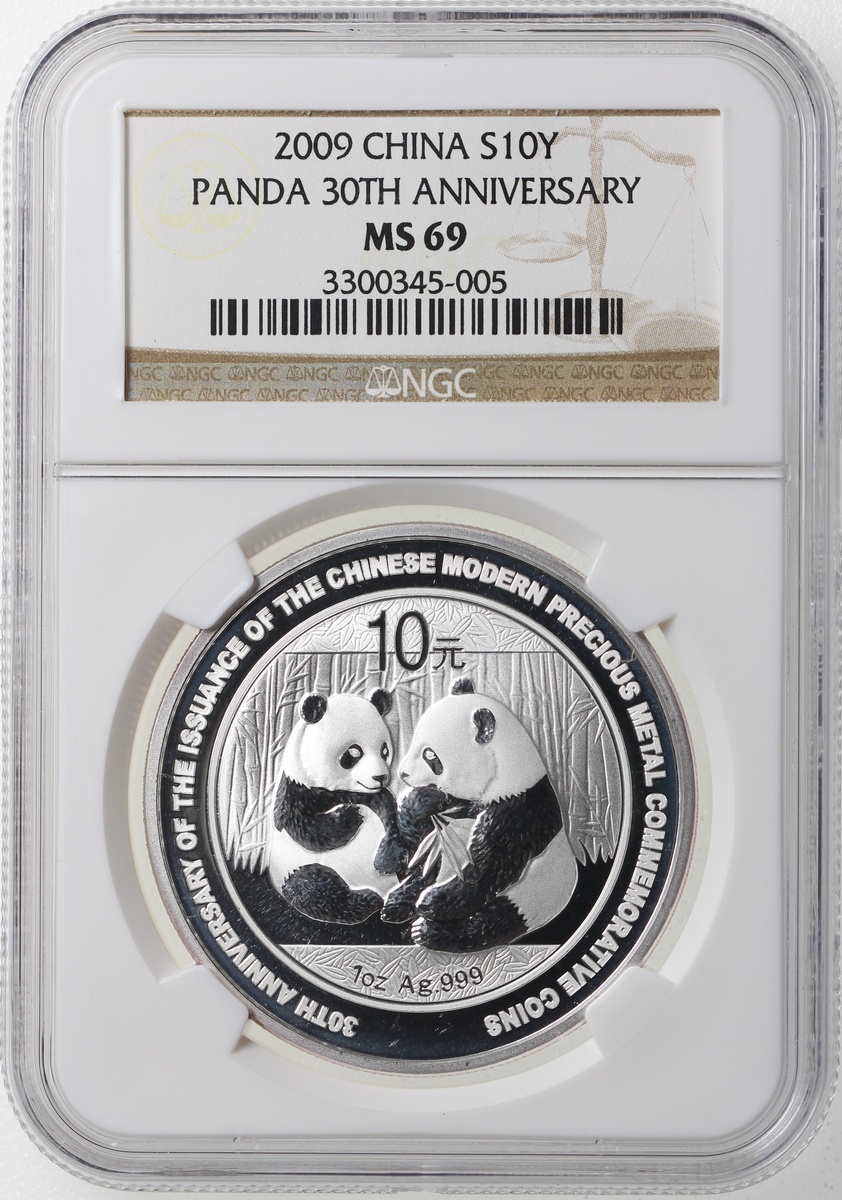 (x) People's Republic of China, silver 10 yuan, 2009, 'Panda', 30th Anniversary issue, NGC MS69.