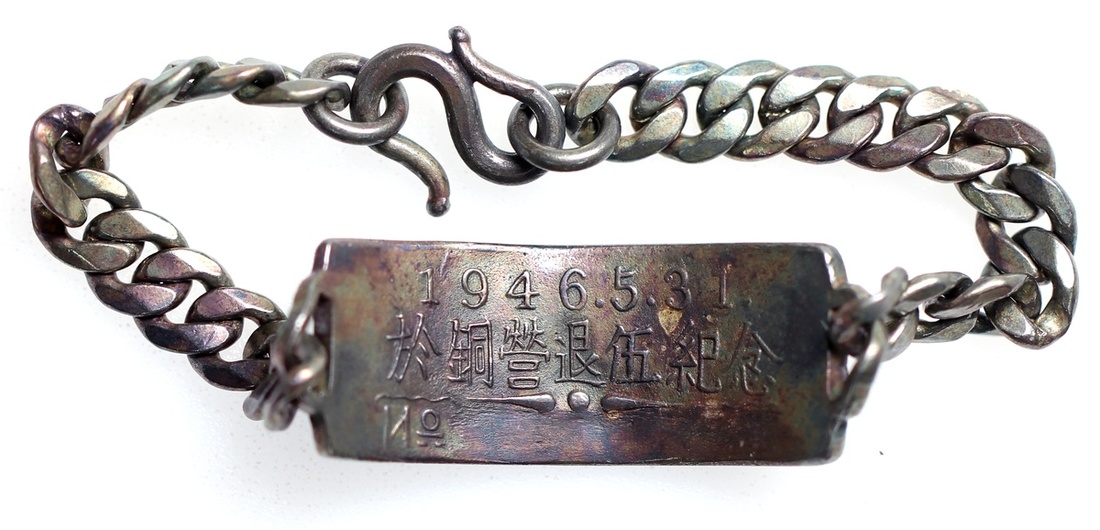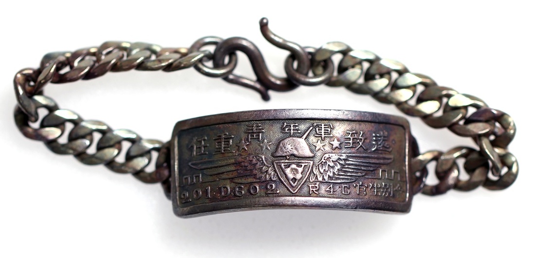(x) China, Republic, a silver bracelet issued to the young veteran in 1946, with vignette of wings and Chinese characters, toned, well preserved and rare seen.