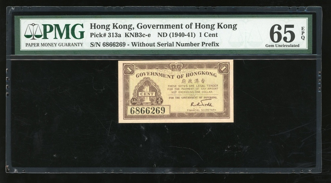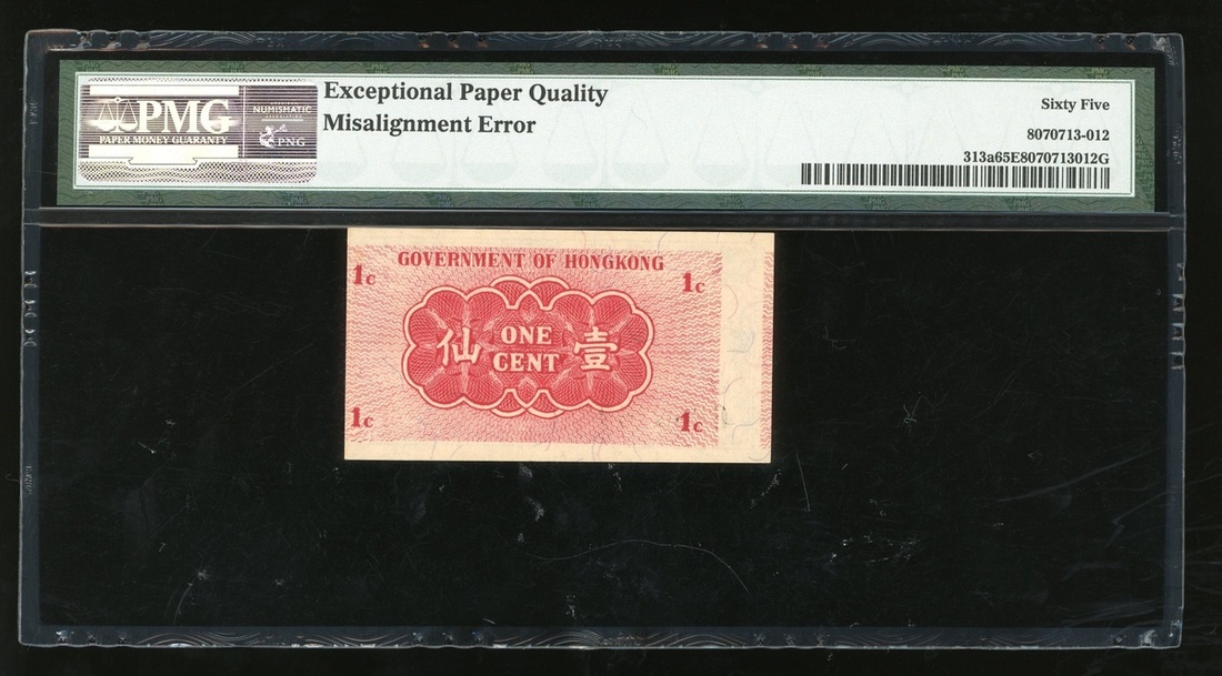 (x) Government of Hong Kong, 1 cent, ND(1940-41), serial number 6866269, 'Misalignment Error',