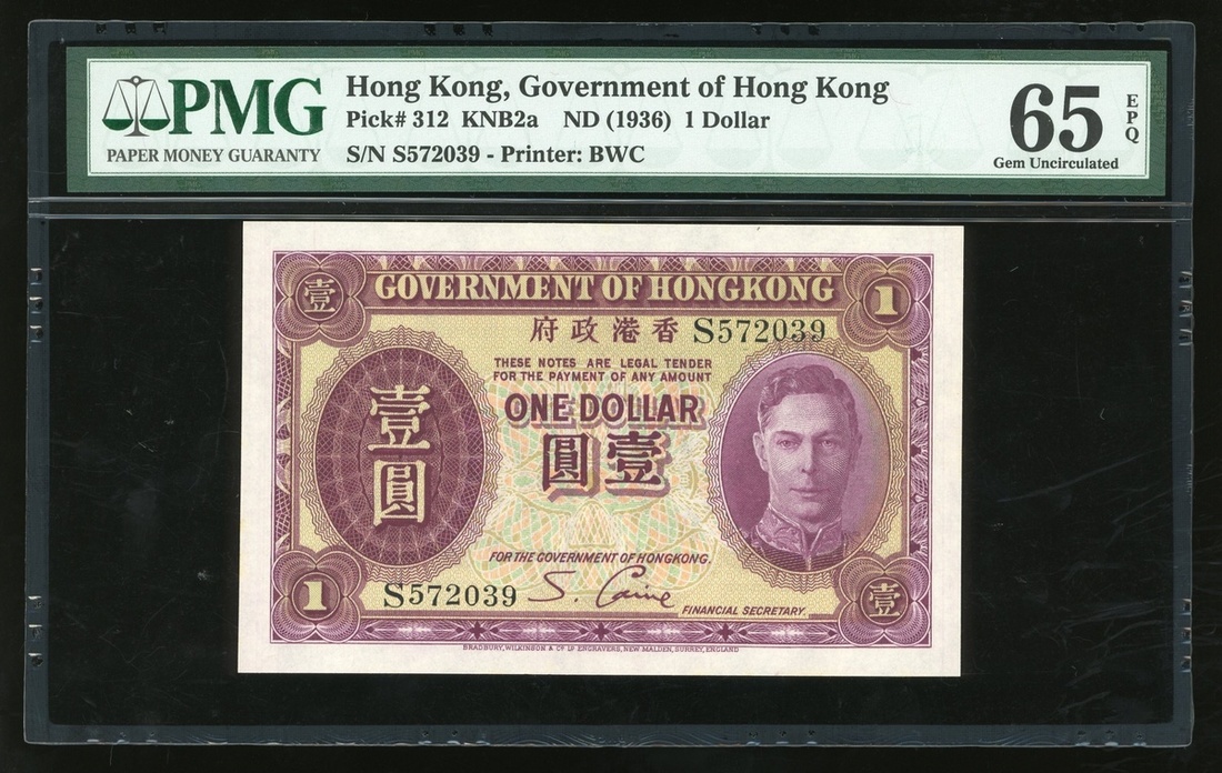 (x) Hong Kong Government, $1, ND(1936), serial number S572039, (Pick 312), PMG 65EPQ, gem uncirculated.