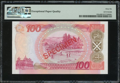 1999年蘇格蘭銀行100鎊樣票,編號AA000000,PMG 66EPQ