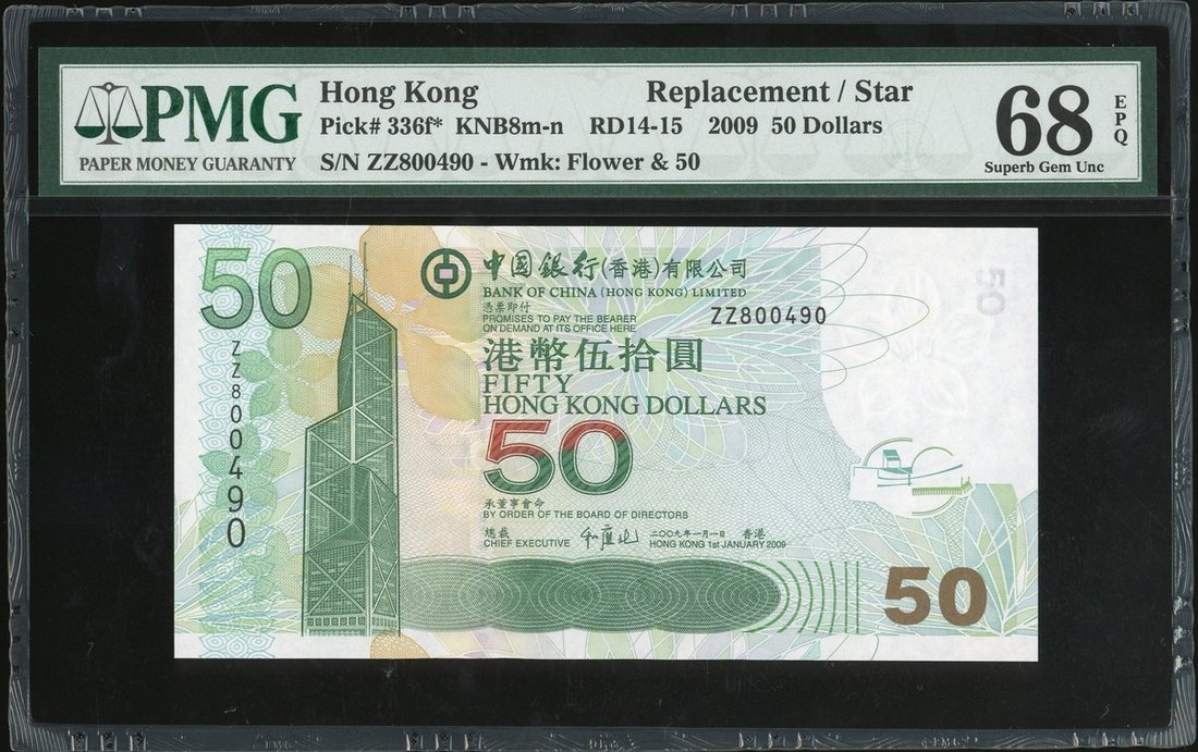 Bank of China, $50, 1.1.2009, replacement prefix ZZ800490, (Pick 336f*), PMG 68EPQ Superb Gem Uncirculated