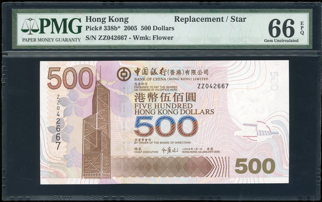 Bank of China, $500, 1.1.2005, replacement serial ZZ042667, (Pick 338b*), PMG 66EPQ Gem Uncirculated