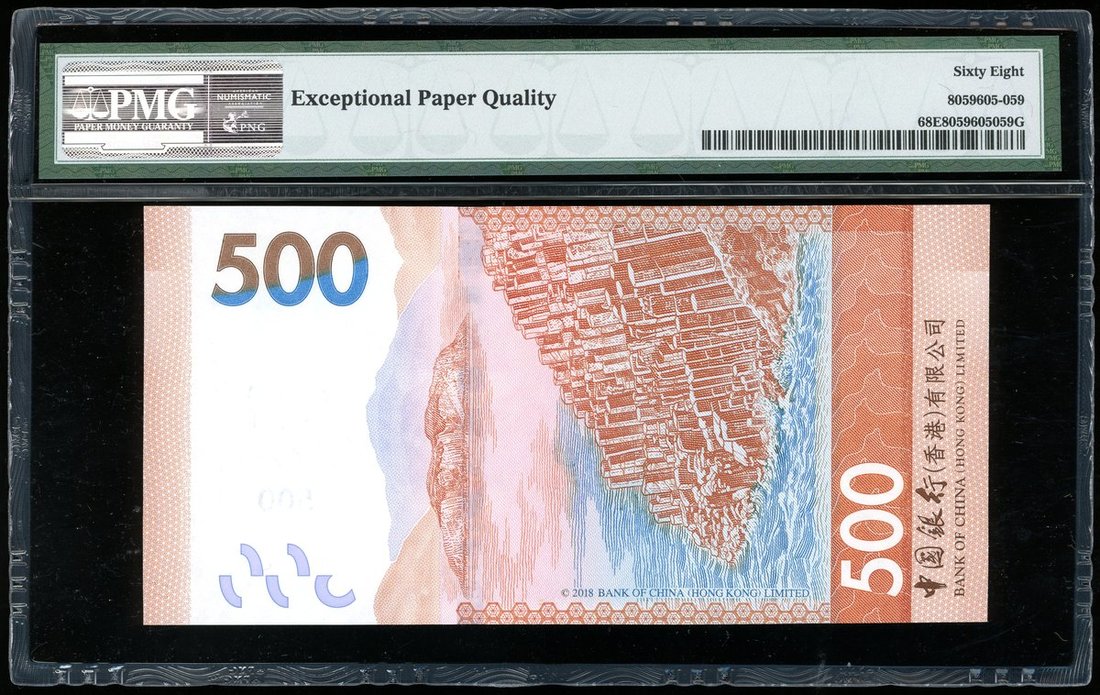Bank of China, $500, 1.1.2018, fancy serial number CY080088, (Pick new), PMG 68EPQ Superb Gem Uncirculated