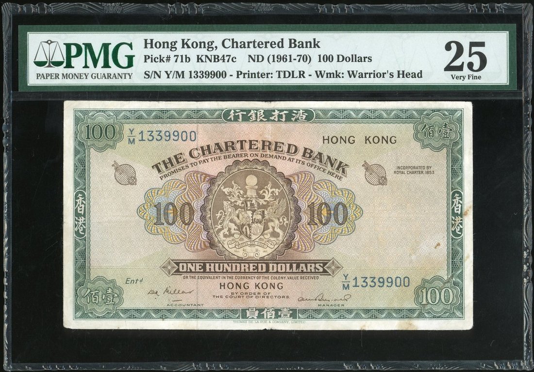 1961-70年渣打銀行100元,無日期,編號Y/M 1339900,PMG 25