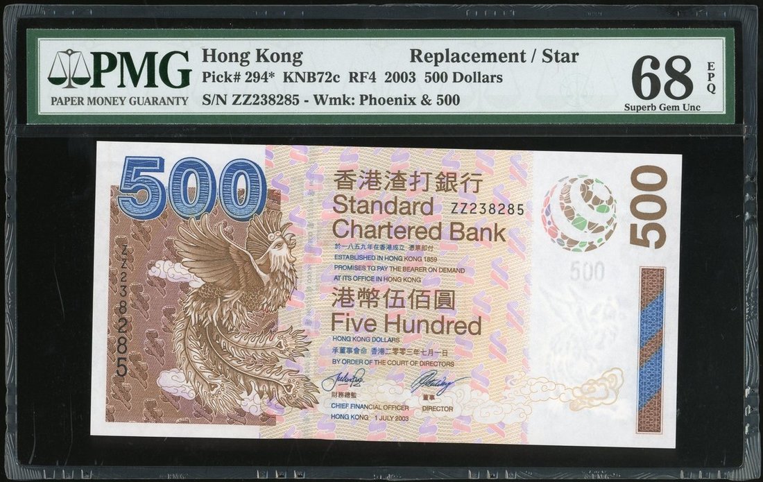 2003年渣打銀行500元,補號ZZ238285,PMG 68EPQ