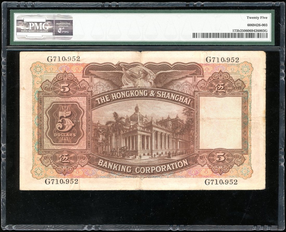 1937年匯豐銀行5元,編號G710952,PMG 25