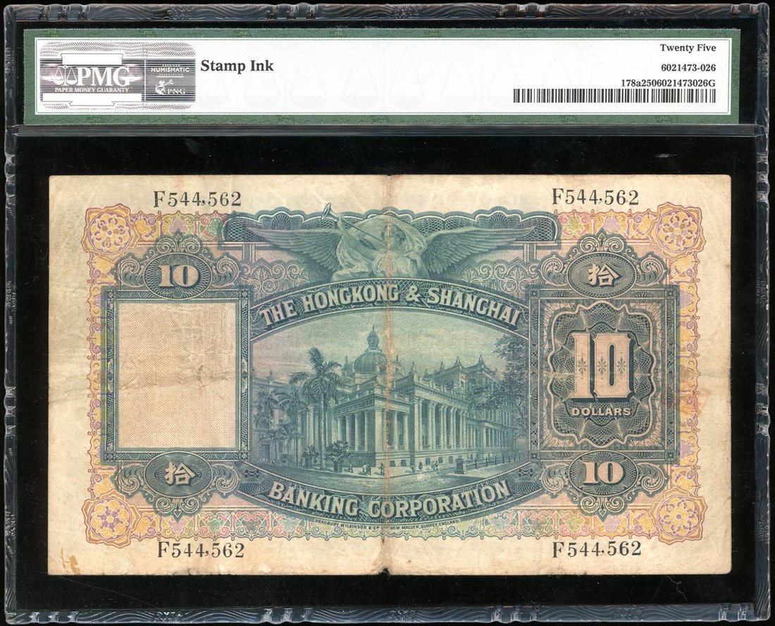 1930年匯豐銀行10元,編號F544562,PMG 25,有墨水印