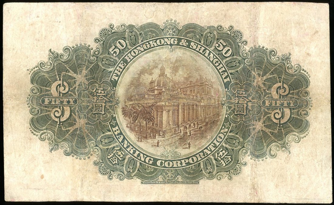 1921年匯豐銀行50元老假票,編號A117356,GF品相,有修補
