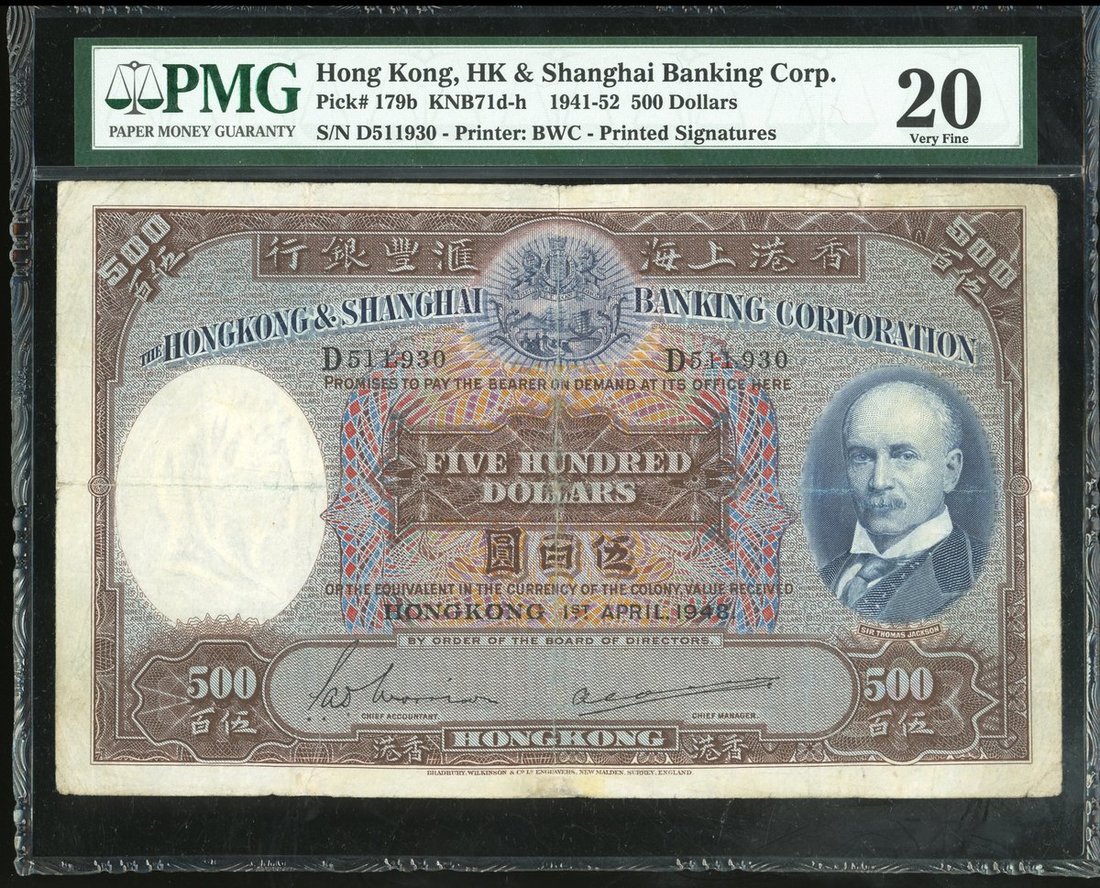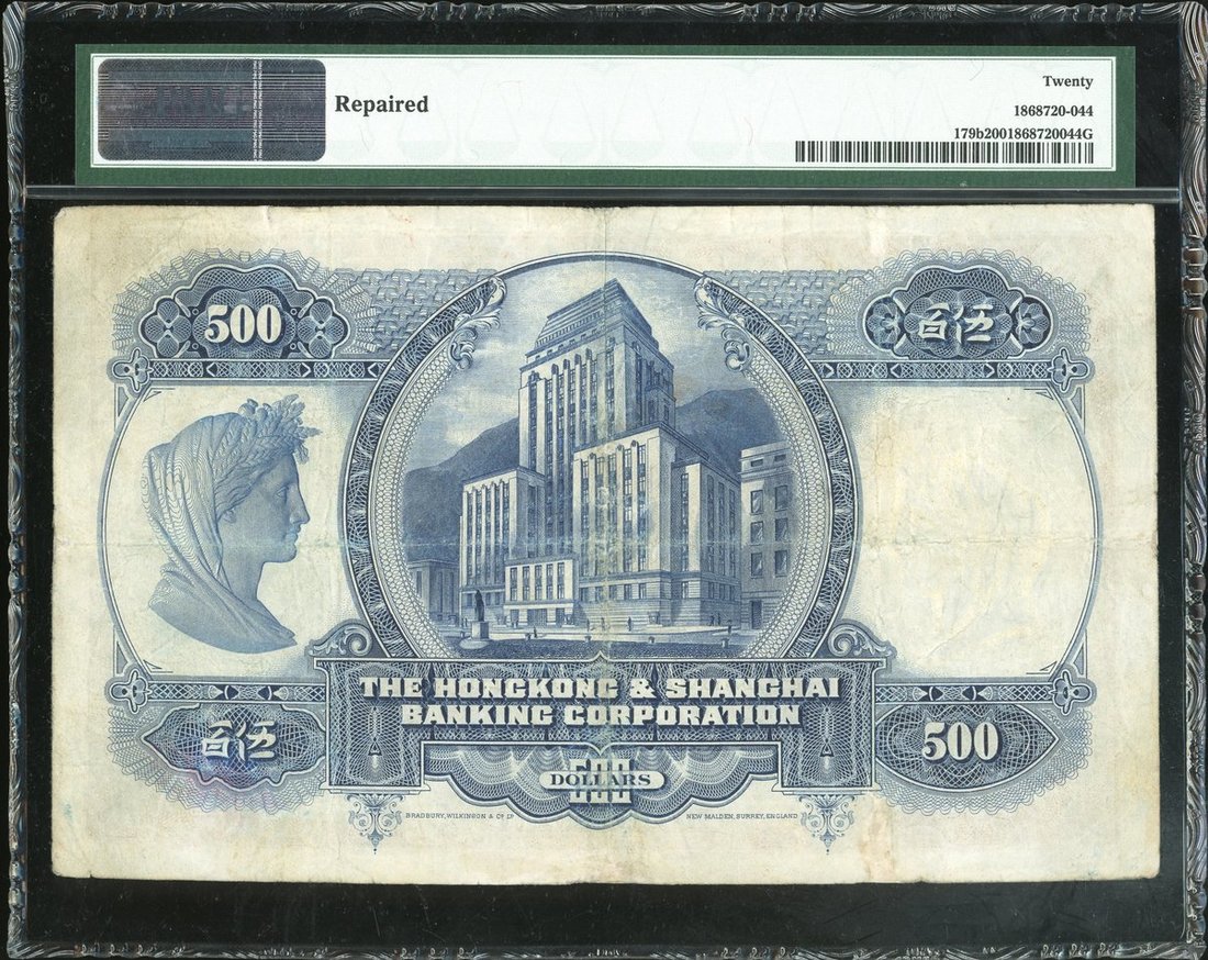 1948年匯豐銀行500元,編號D511930,PMG 20,有修補