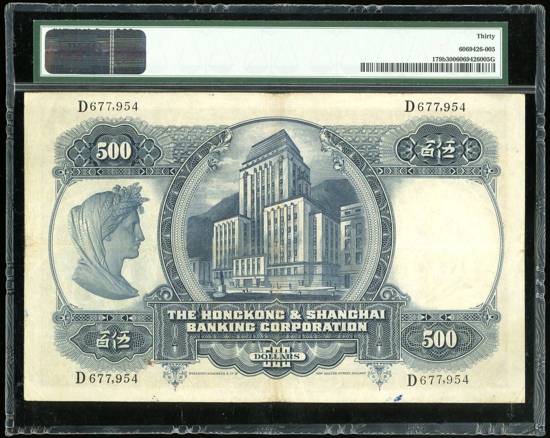 1952年匯豐銀行500元,編號D677954,PMG 30,漂亮的原裝紙