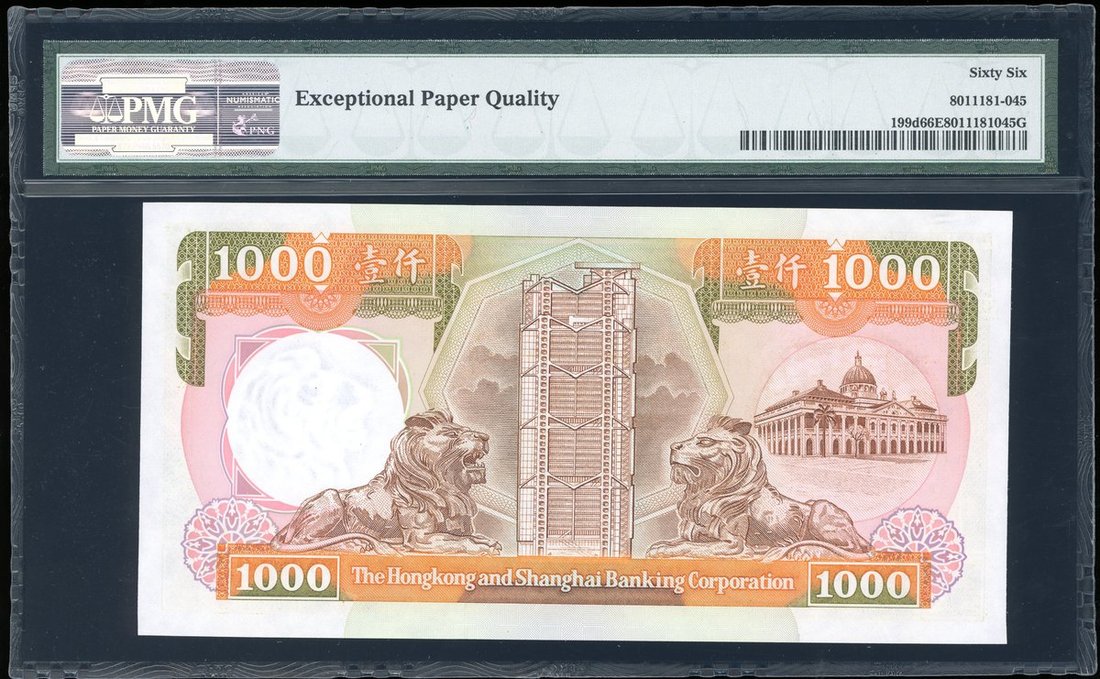 The Hongkong and Shanghai Banking Corporation, $1000, 1.1.1991, serial number BY103353, (Pick 199d), PMG 66EPQ Gem Uncirculated