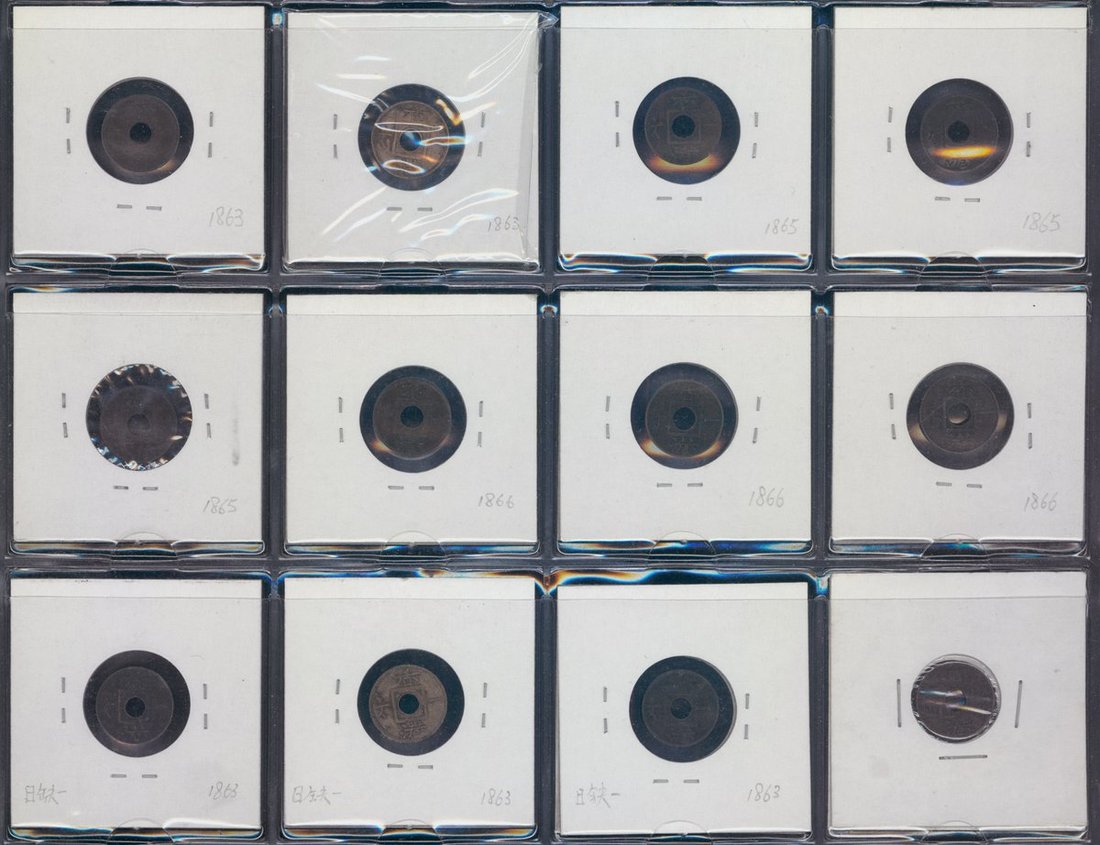 香港1文一組12枚,包括1863年5枚、1865年3枚及1866年4枚,F至EF品相