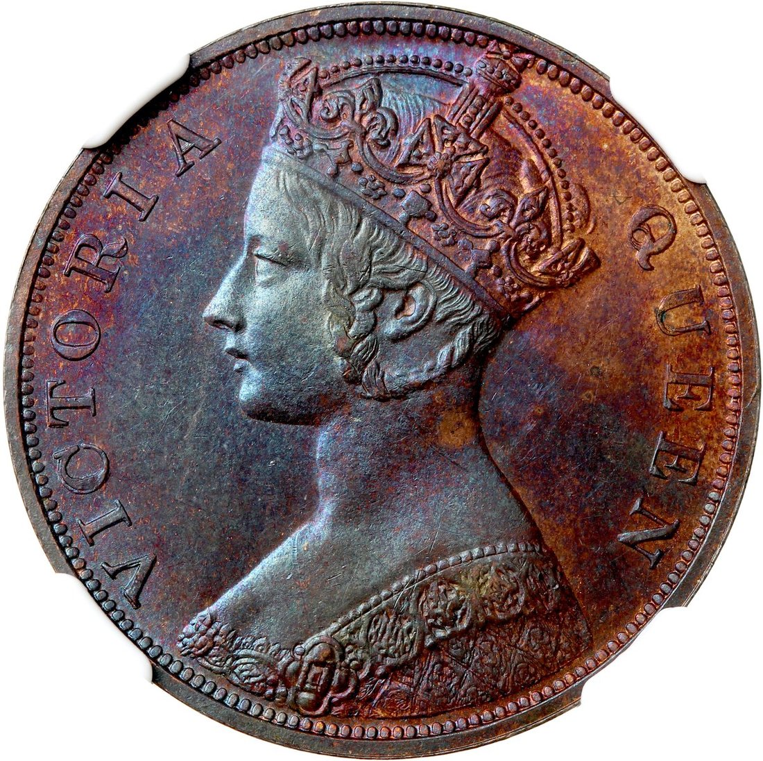 Hong Kong, bronze 1 cent, 1876, Victoria on obverse, lovely blueish toning, NGC MS63BN.