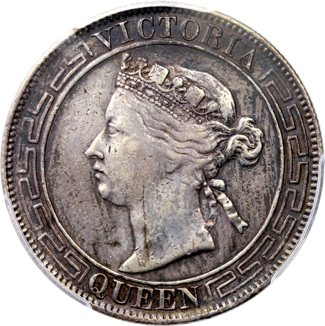 Hong Kong, silver 50 cents, 1866, Victoria on obverse, dark toning, PCGS XF Detail, cleaning, very rare.