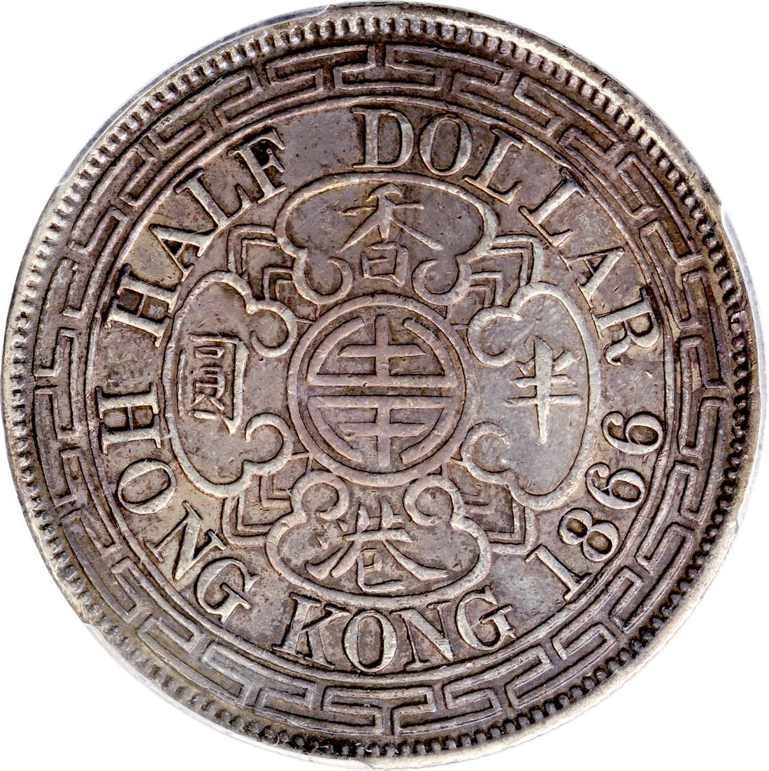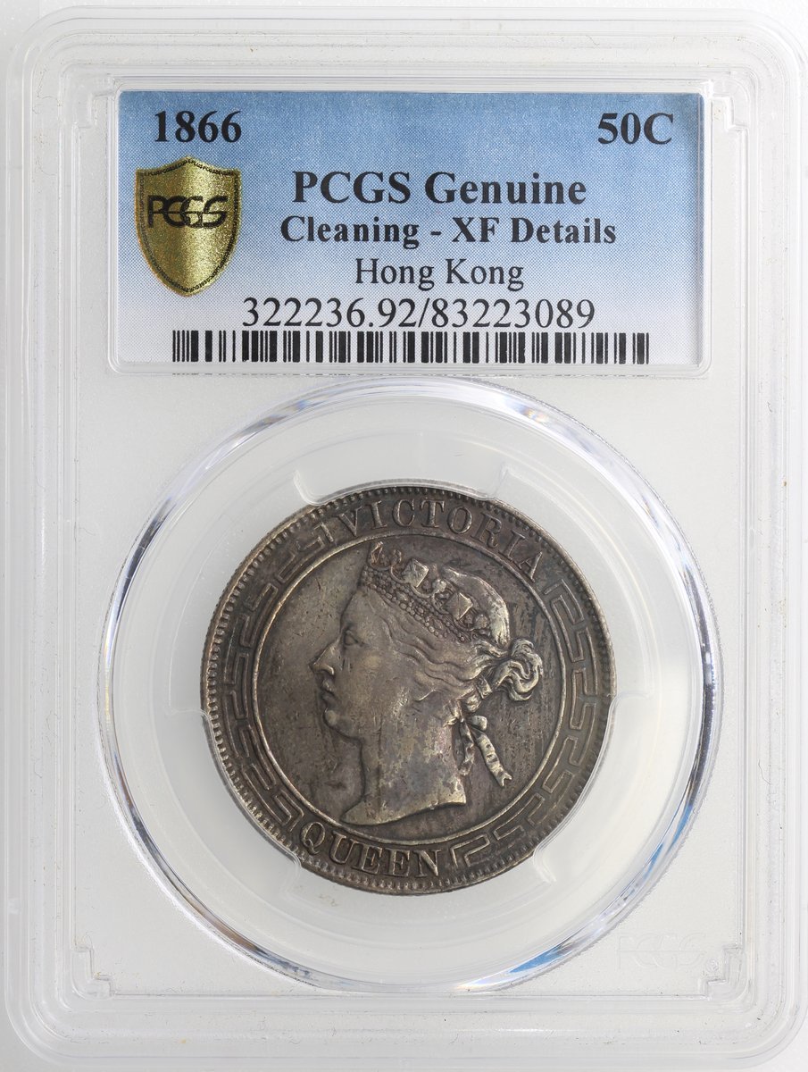 1866香港半元, PCGS XF Detail,有清洗,深色包漿,十分罕見