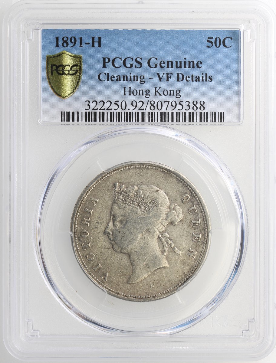 Hong Kong, silver $1, 1891-H, Victoria on obverse, PCGS VF Detail, cleaned.