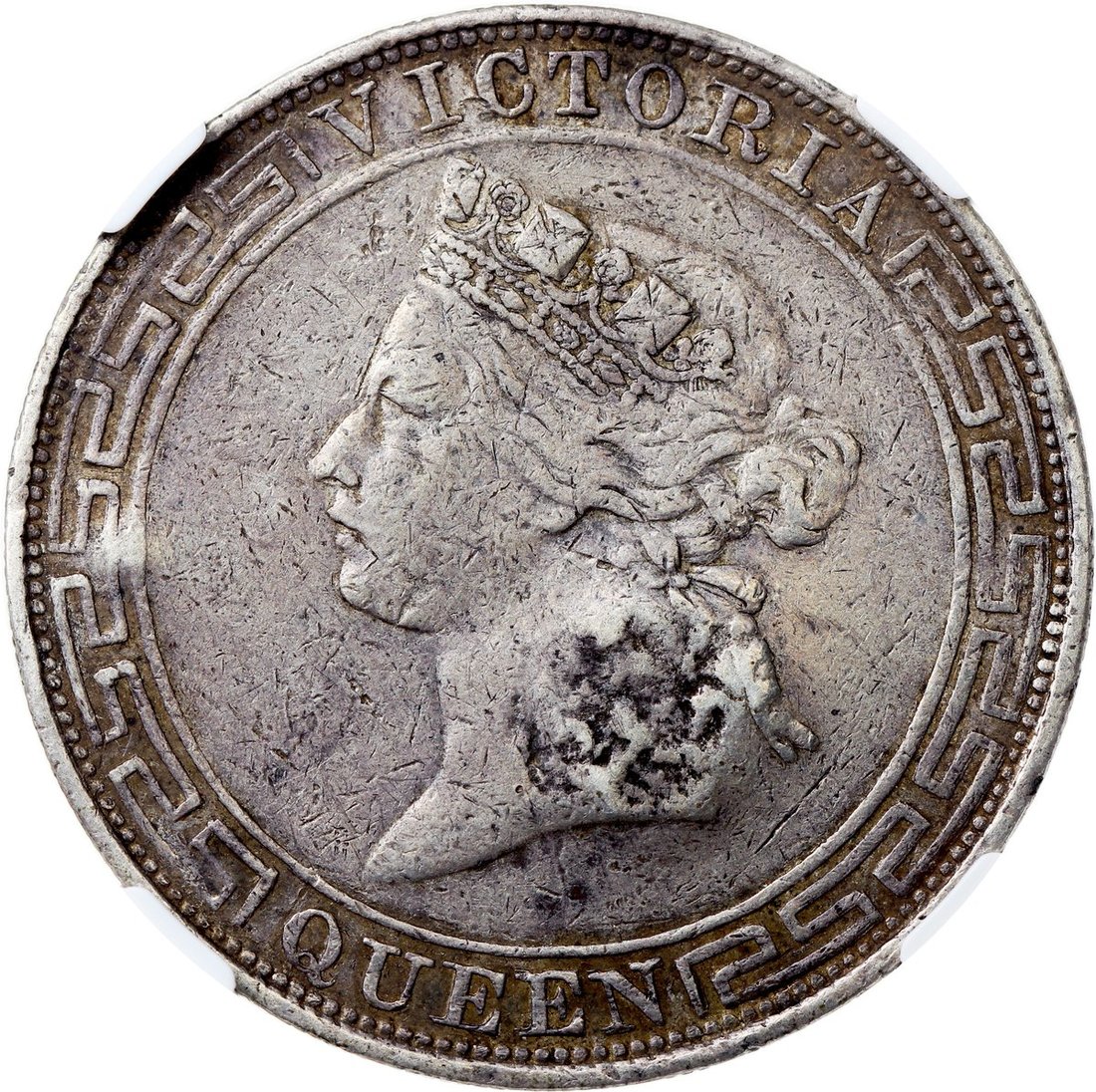 Hong Kong, silver $1, 1866, Victoria on obverse, NGC VF Details, chopmarked.
