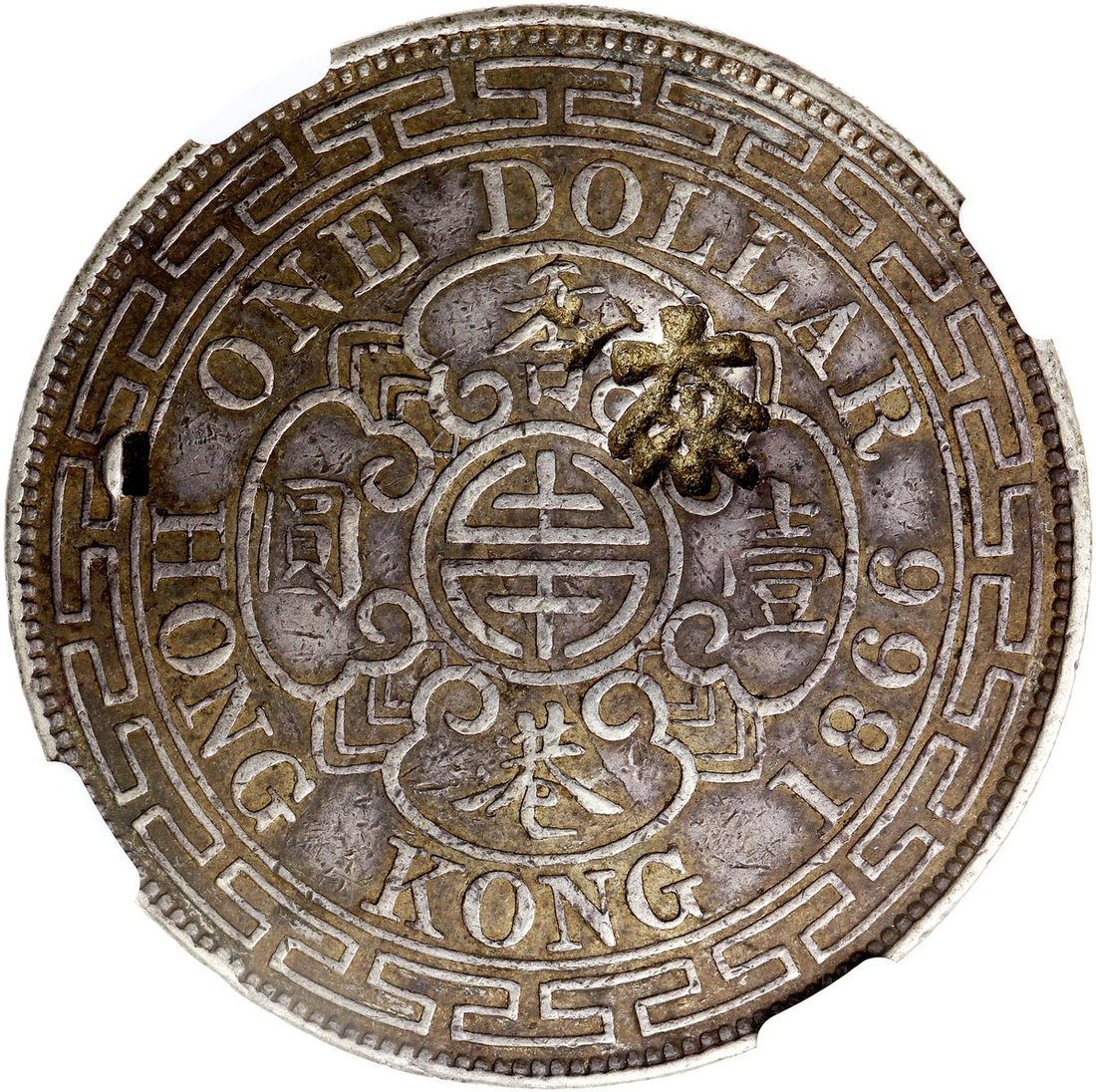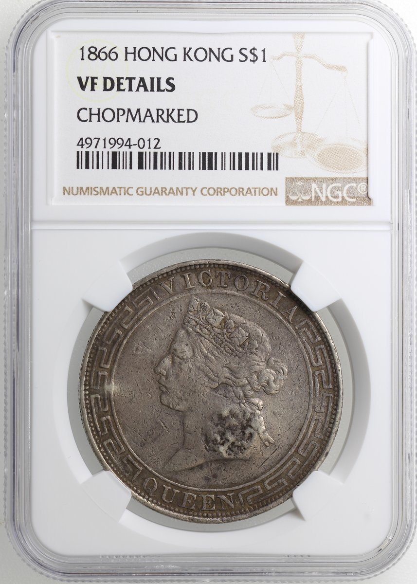 1866年香港1元,NGC VF Details,有戳記