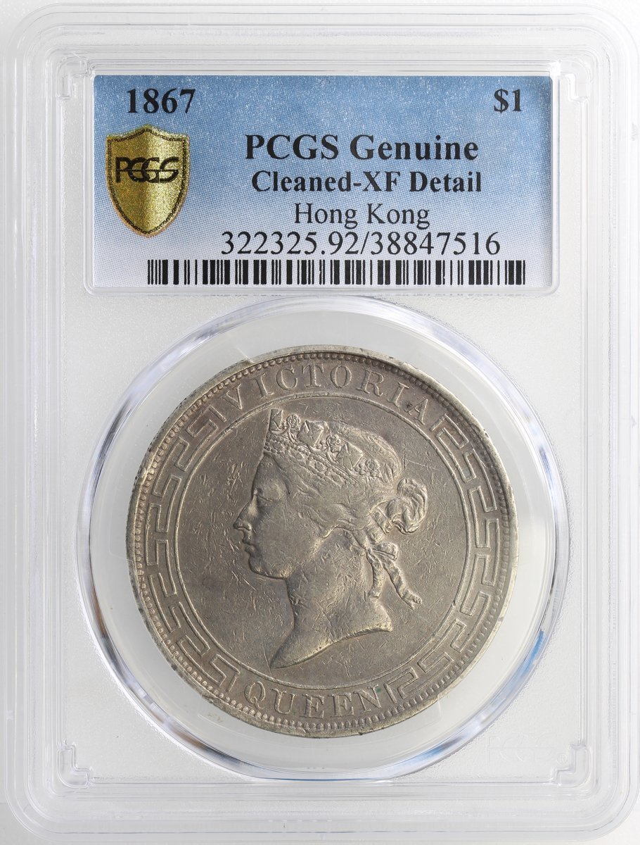 1867香港1元,PCGS XF Detail,有清洗