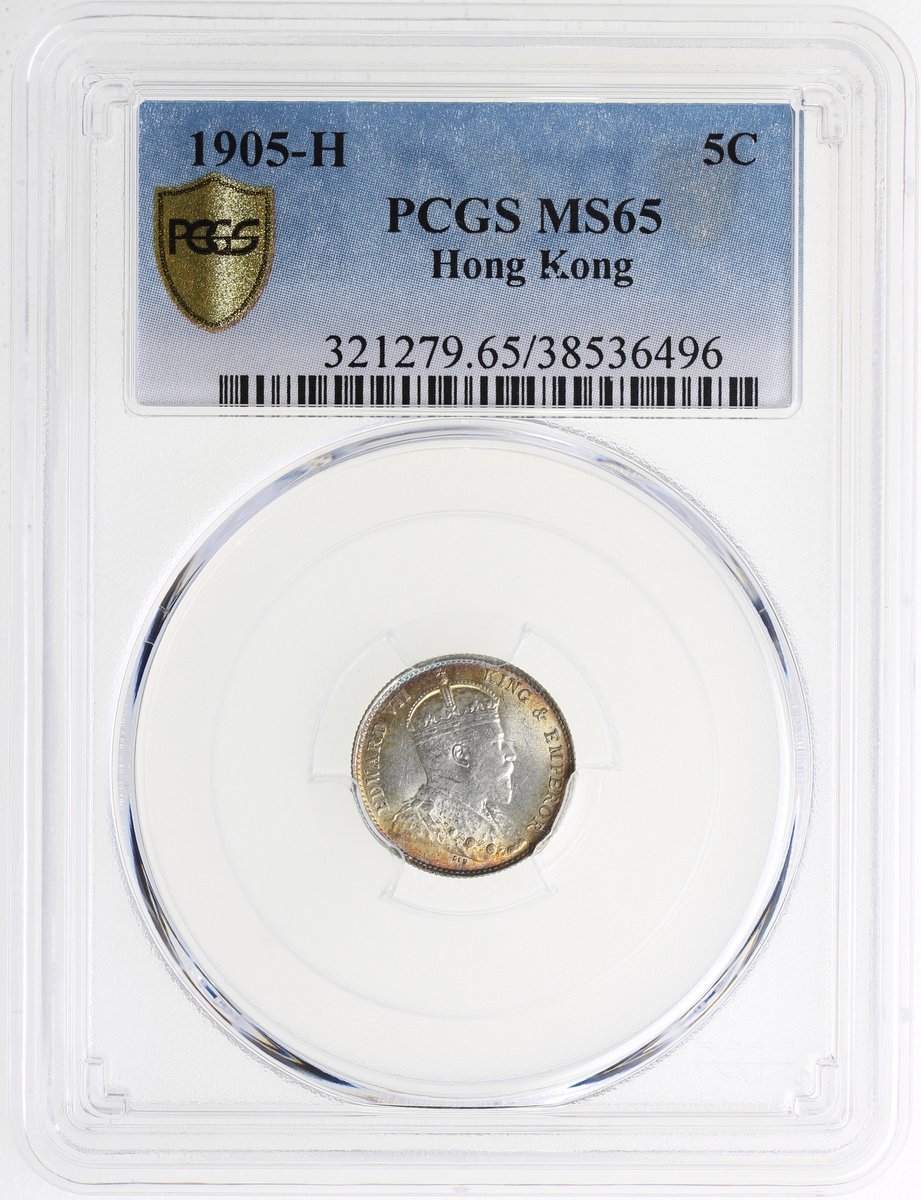 1905-H年香港5仙,PCGS MS65
