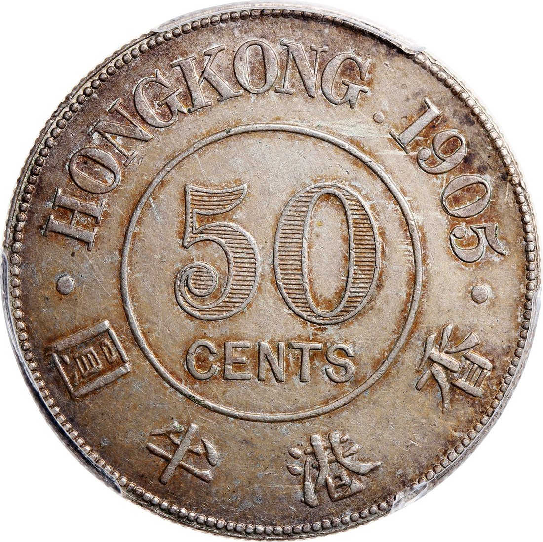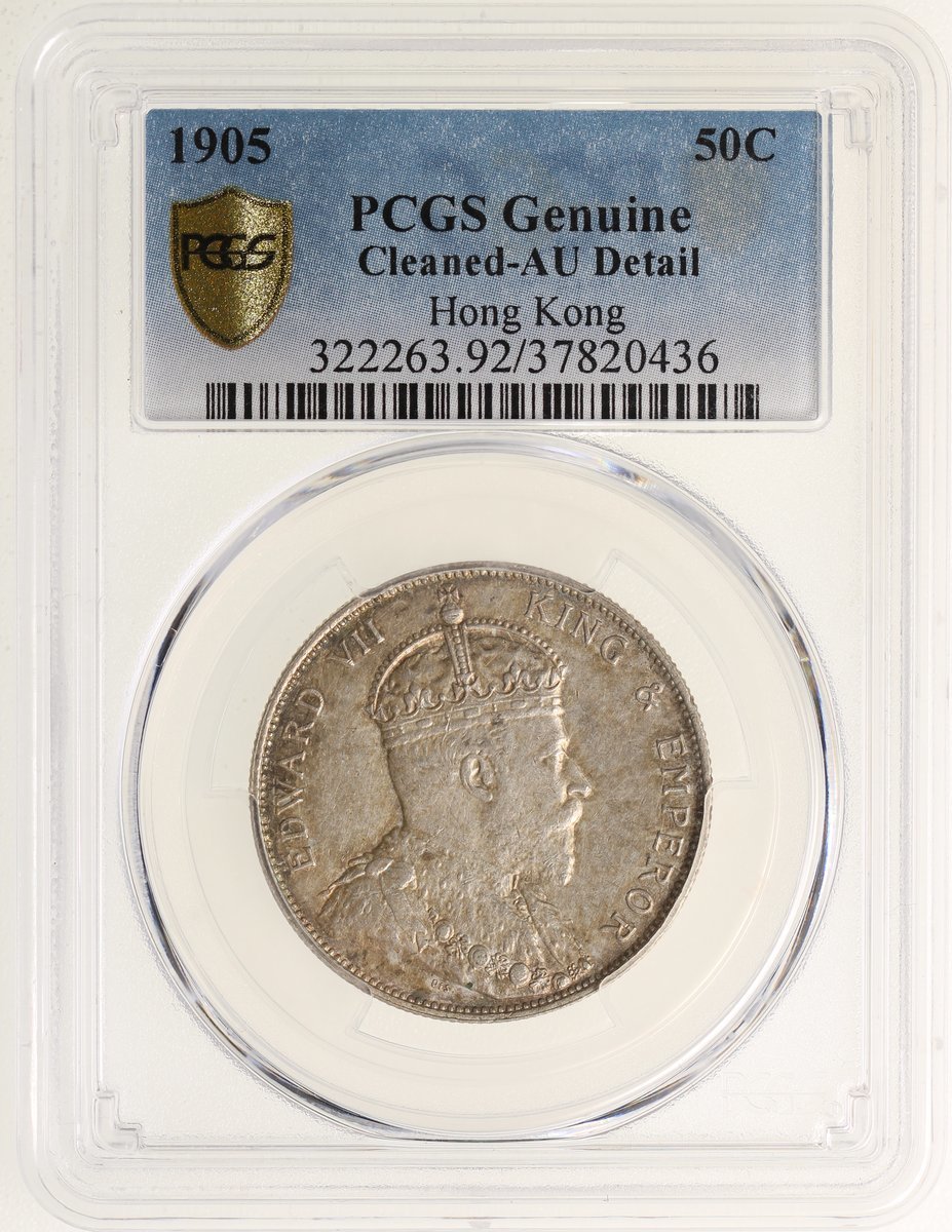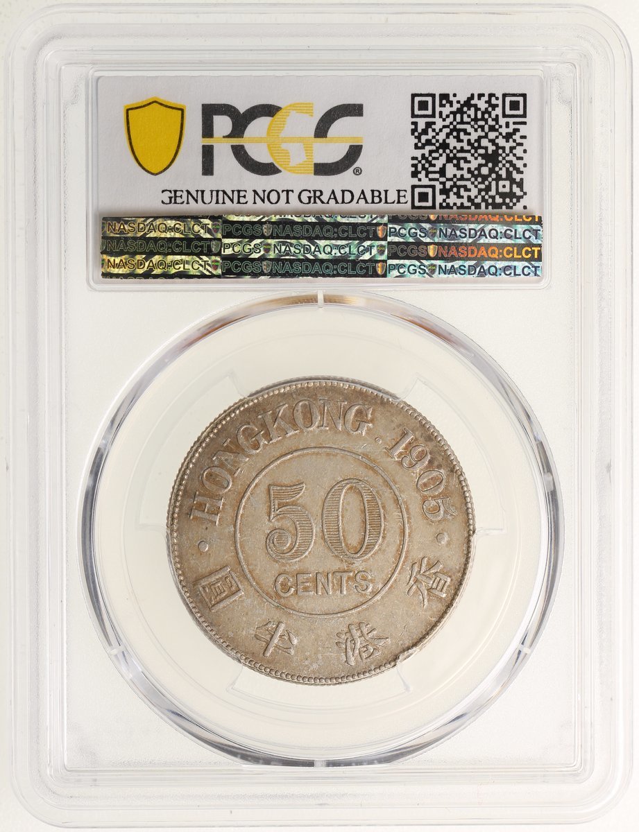 Hong Kong, silver 50 cents, 1905, PCGS Genuine Cleaned - AU Detail