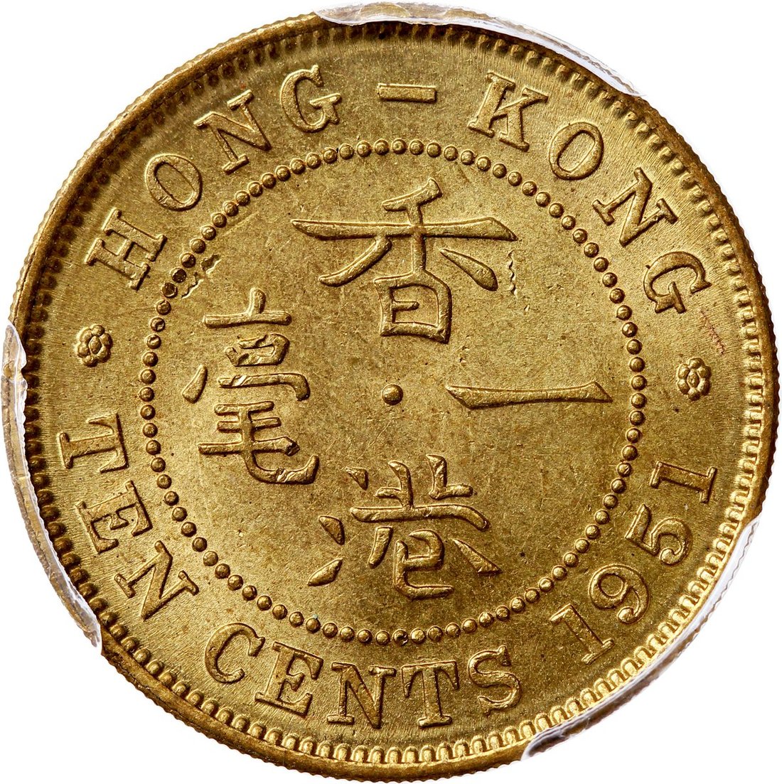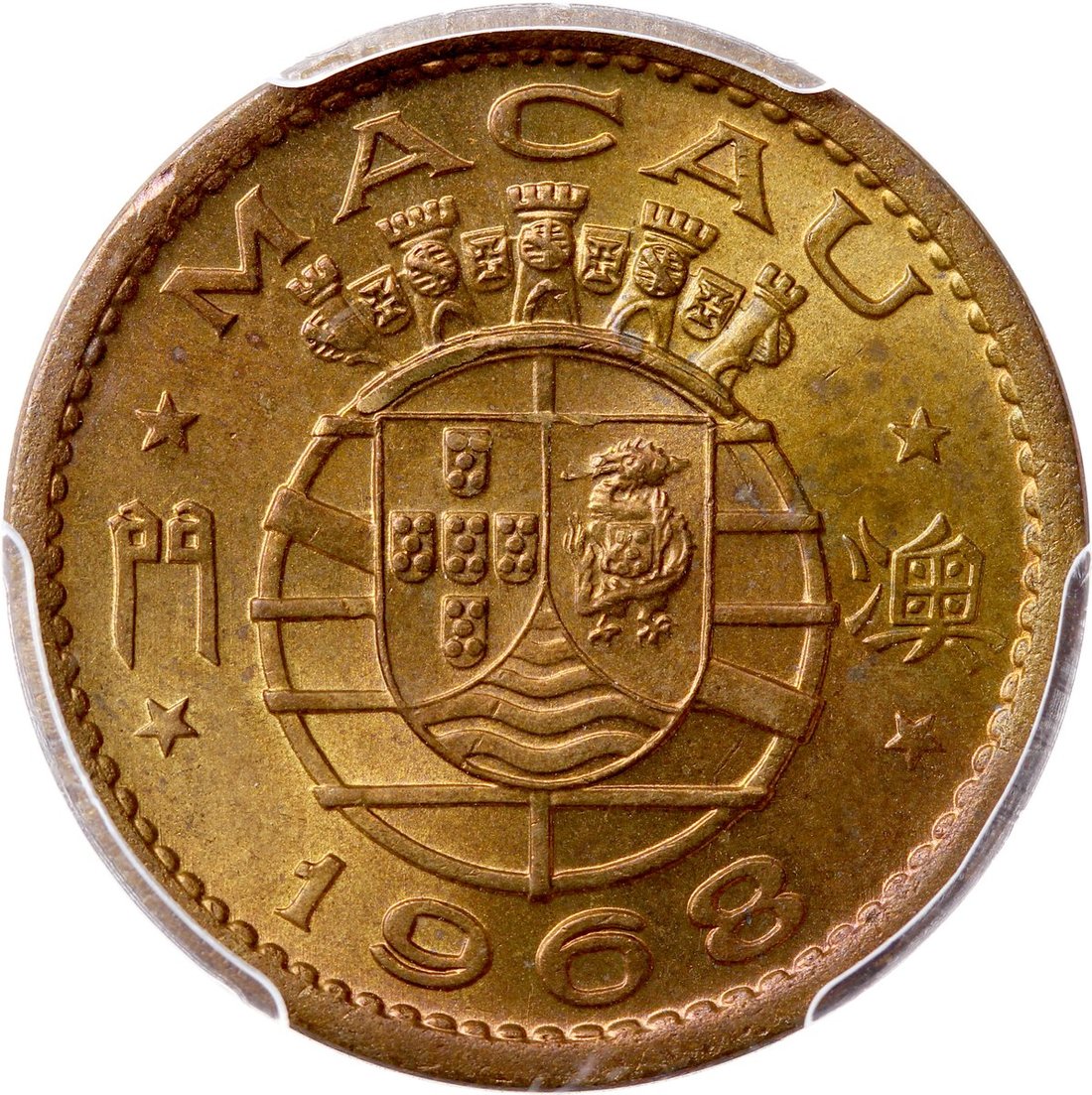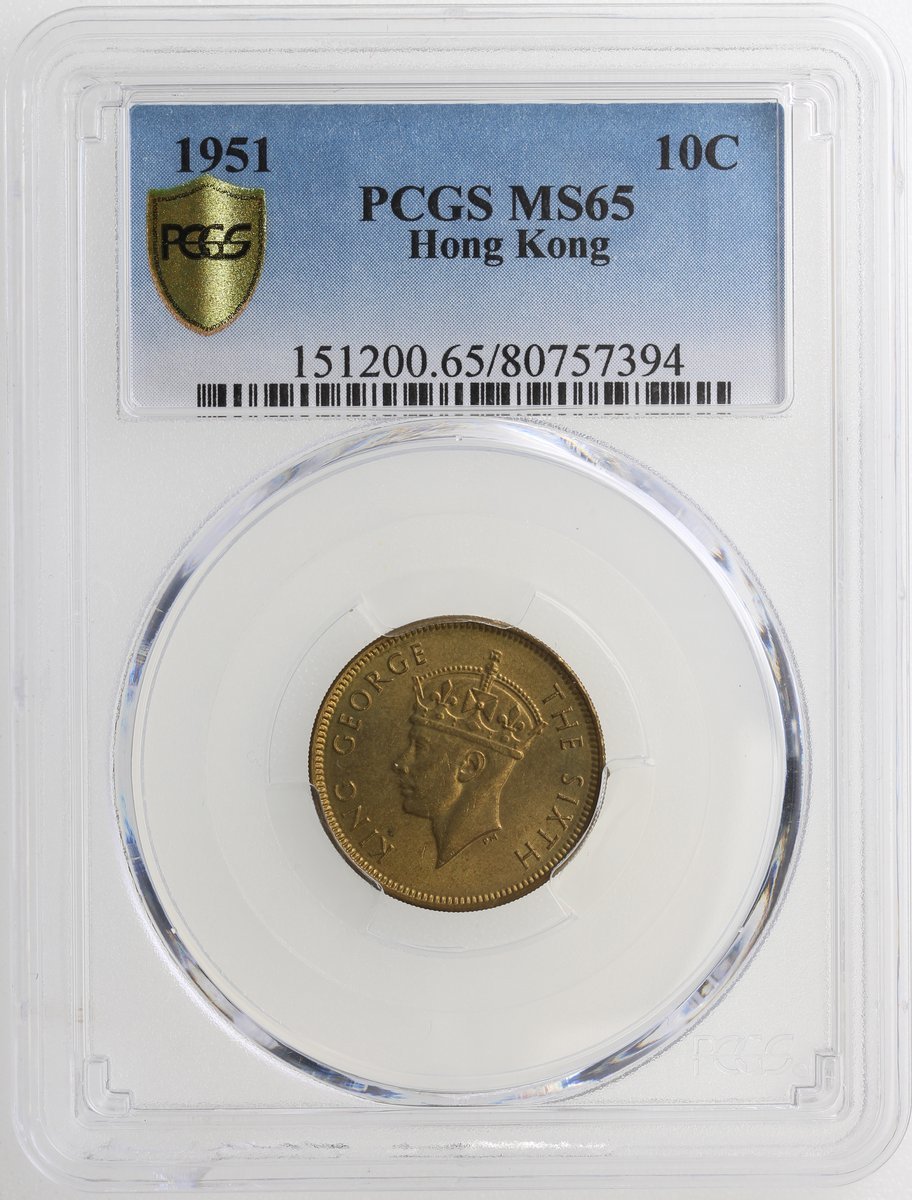 Mixed lot, a Hong kong 1931 copper 1 cent and 1951 copper nickel 10 cents, together with a Macau 1968 copper 10 avos, the 1 cent graded PCGS MS65RD, the rest MS65.(3)