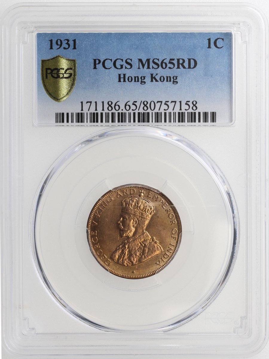 香港澳門錢幣3枚一組,包括香港1931年1仙銅幣及1951年1毫鎳銅幣,以及澳門1968年1毫銅幣,前兩枚評PCGS MS65,後者評PCGS MS65RD
