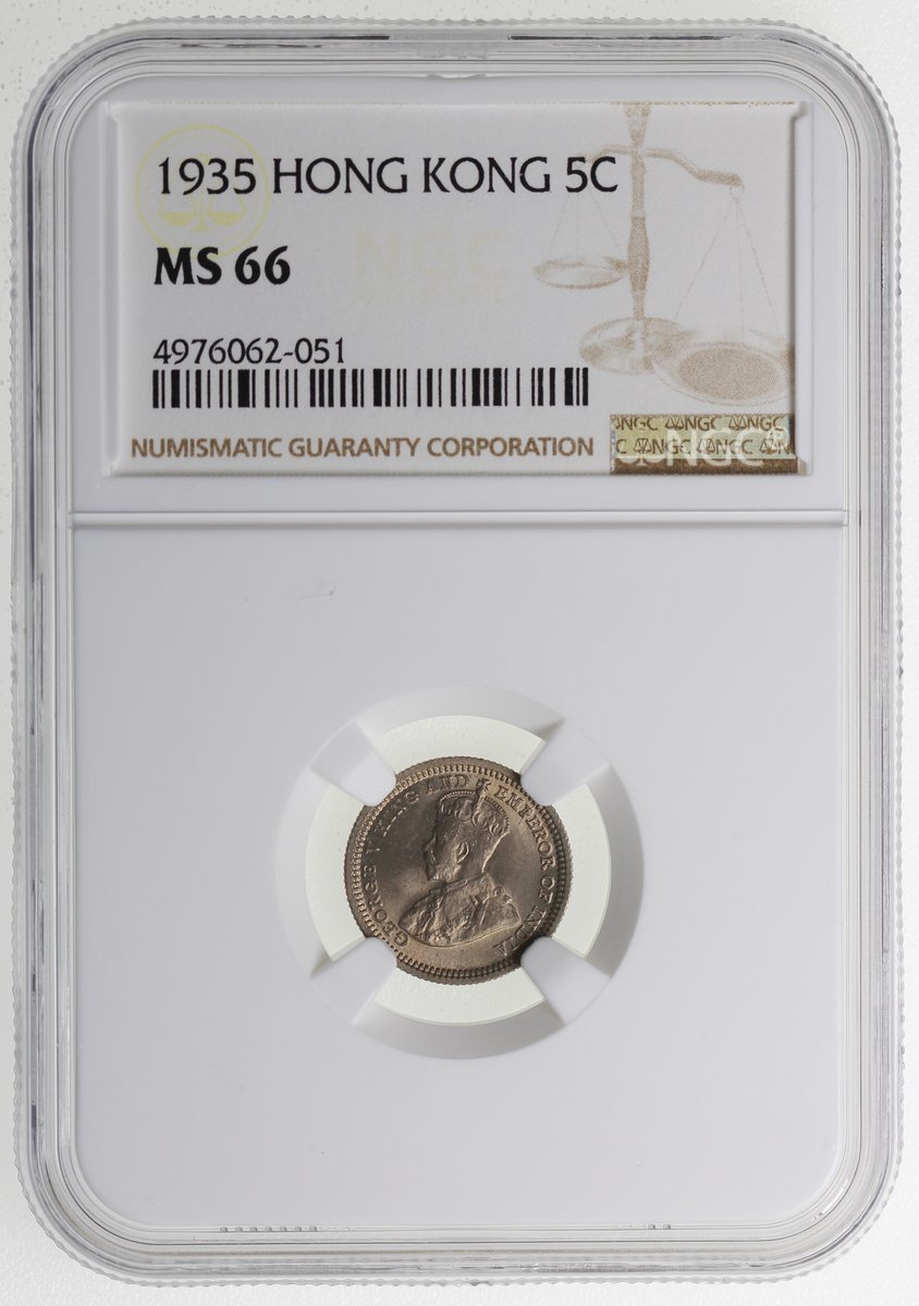 香港5仙一組3枚,1935年2枚及1939-KN 1枚,分別評NGC MS64,MS66及MS64