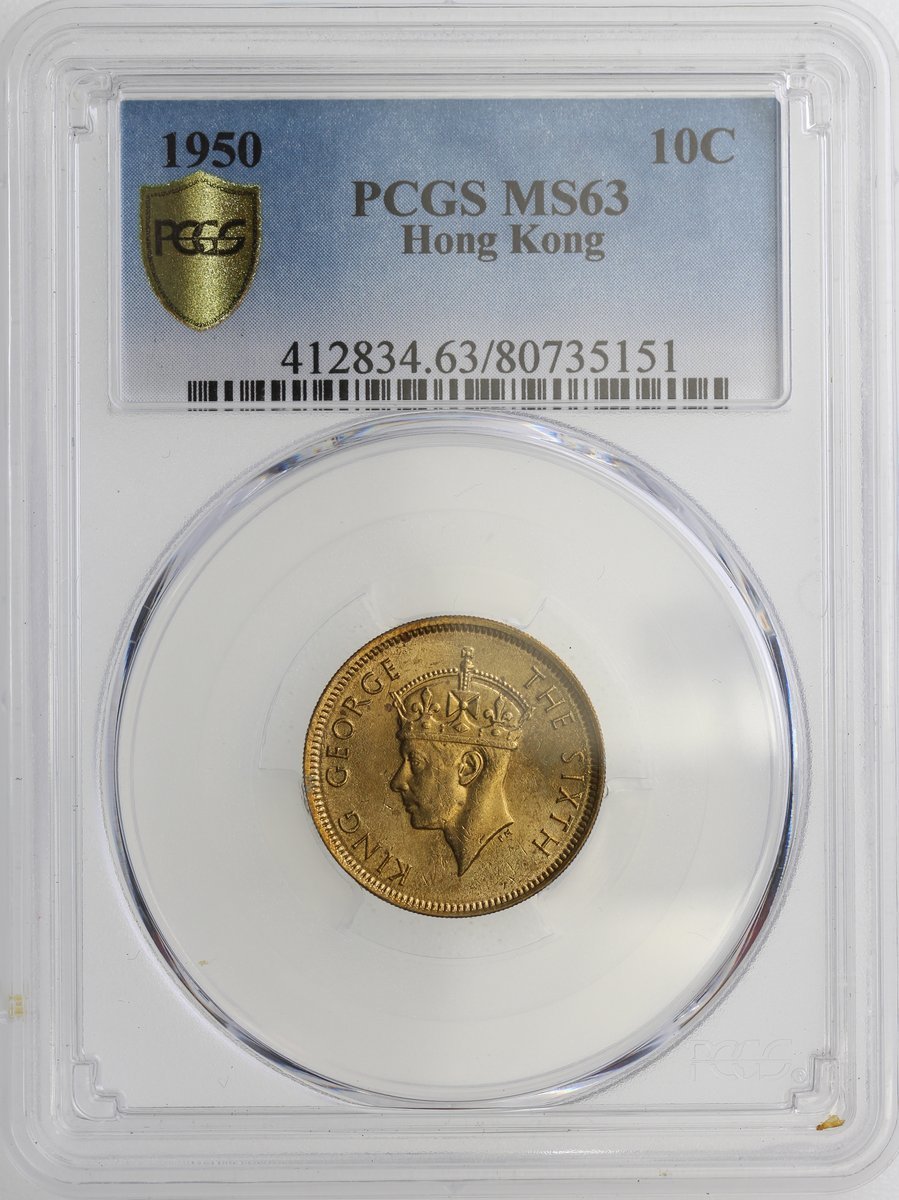 Hong Kong, copper nickel 10 cents, 1950, PCGS MS63