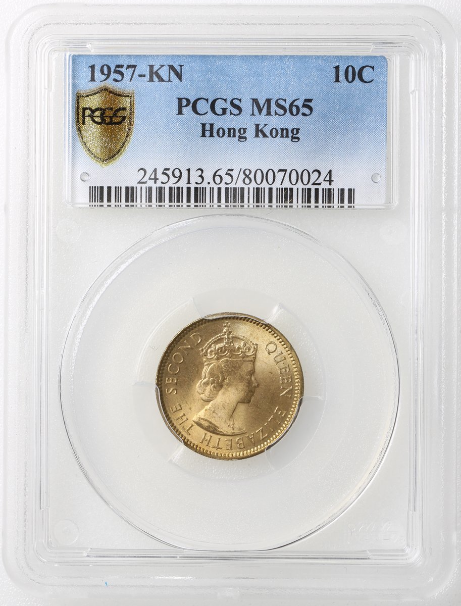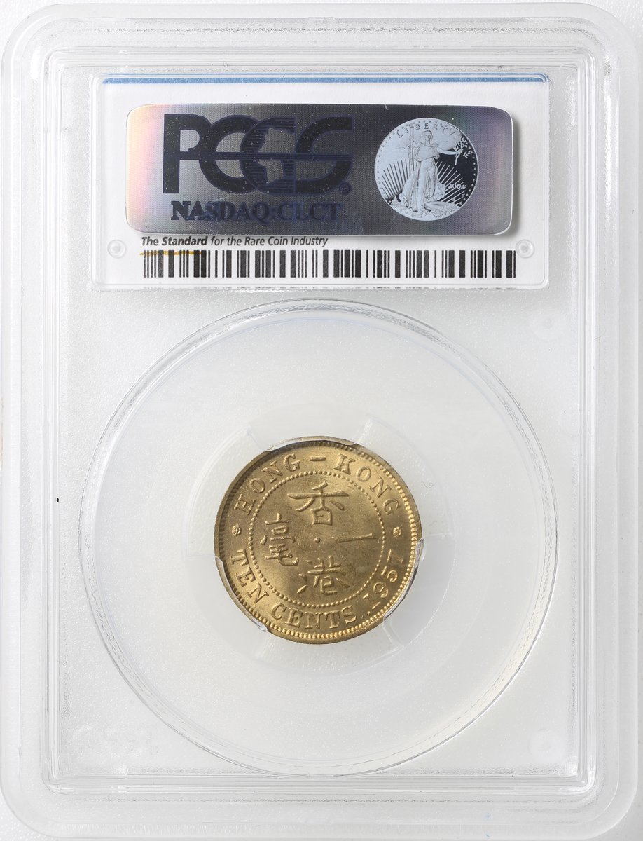 Hong Kong, a pair of nickel brass 10 cents, 1950 and 1957KN, PCGS graded MS64 and MS65.(2)