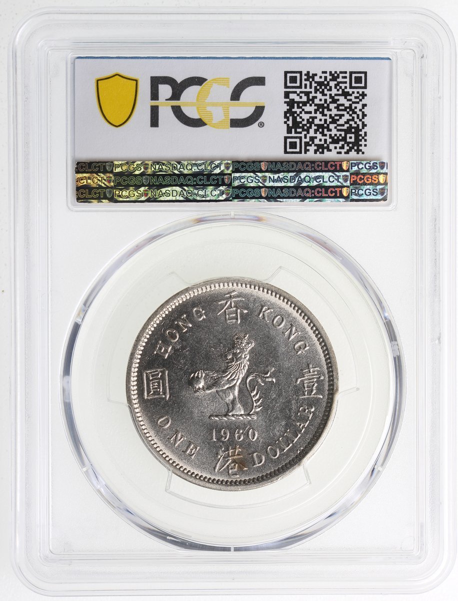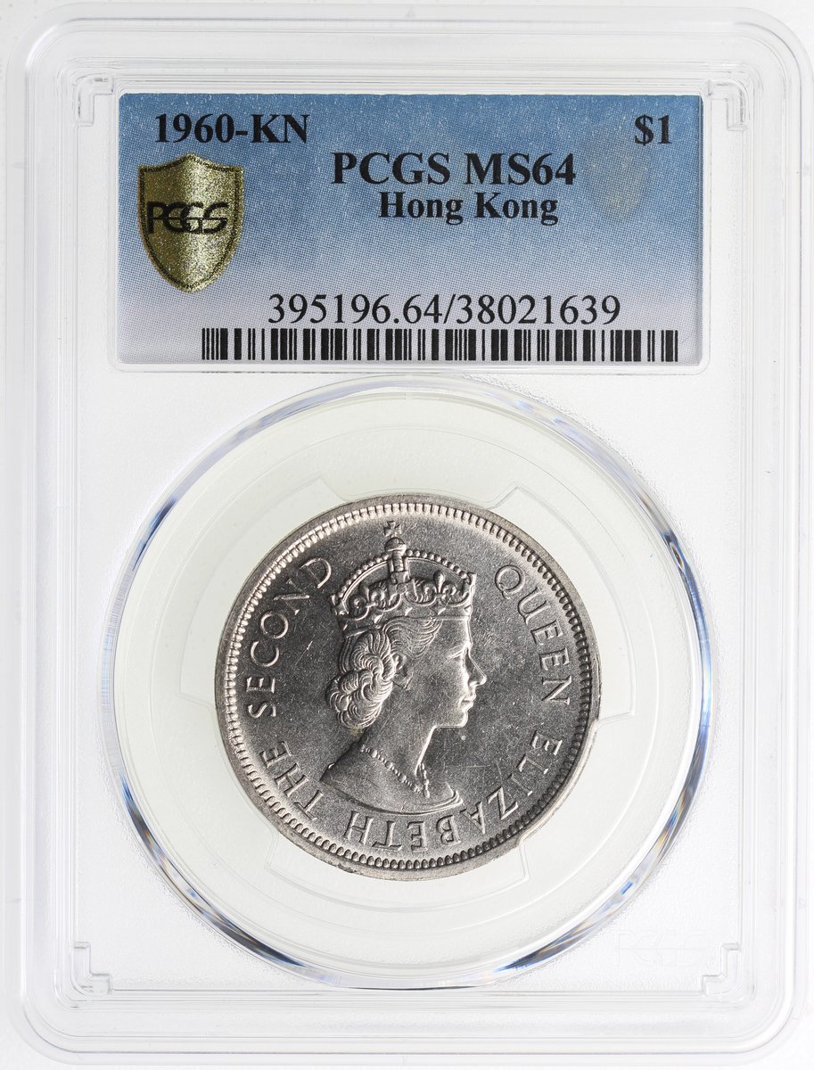 1960-KN香港1元, PCGS MS64,背有微漬,重要年份