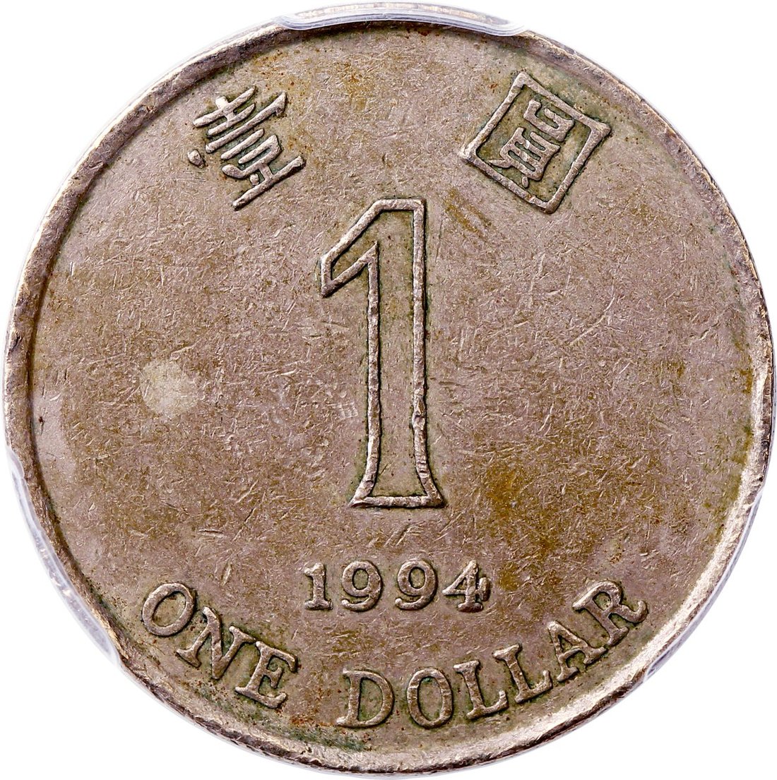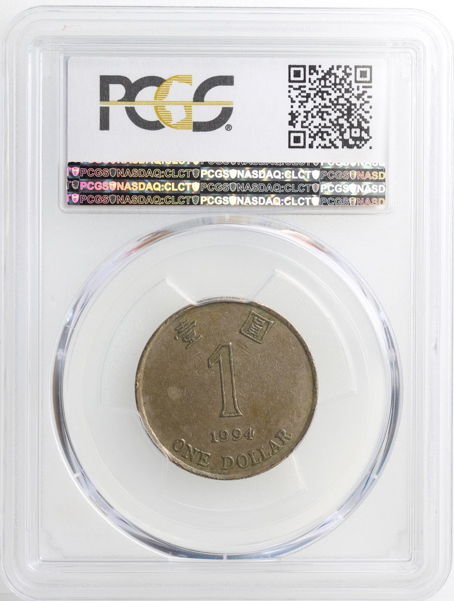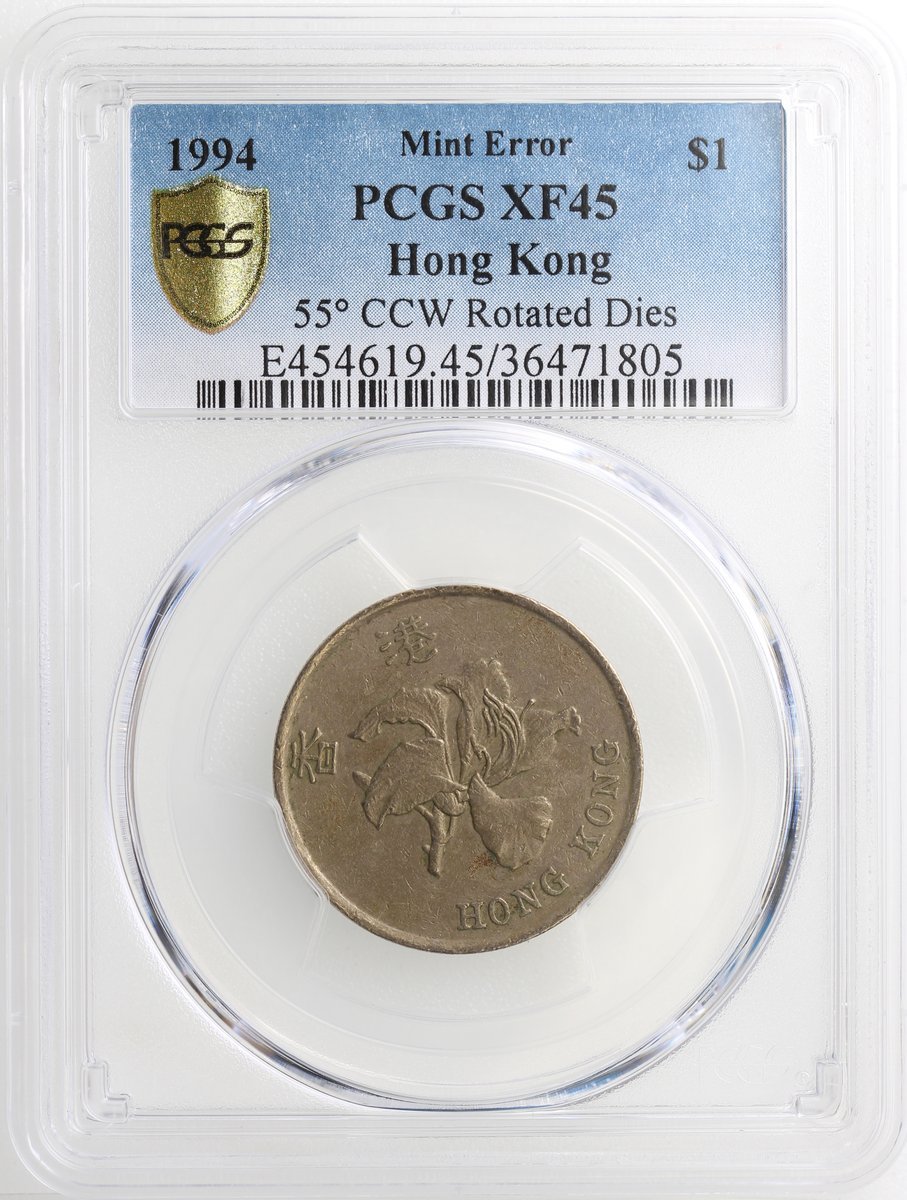 1994年香港1元,55度逆背錯體,PCGS XF45