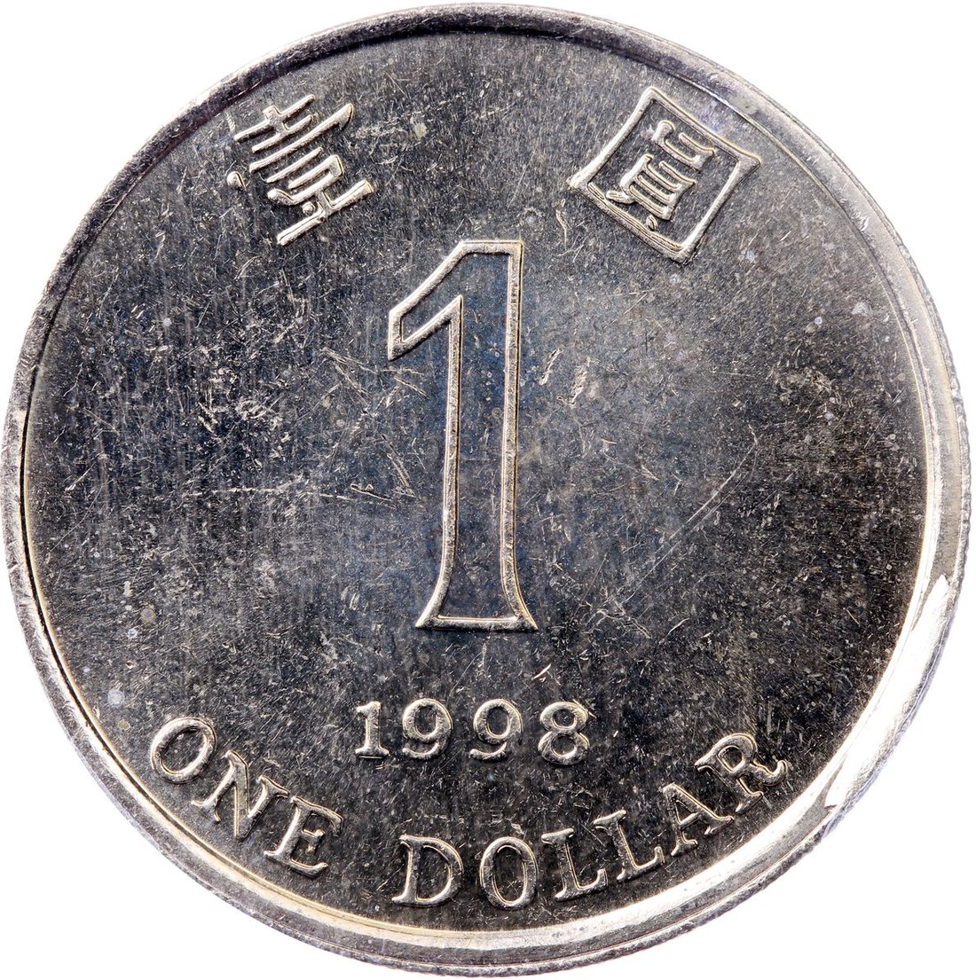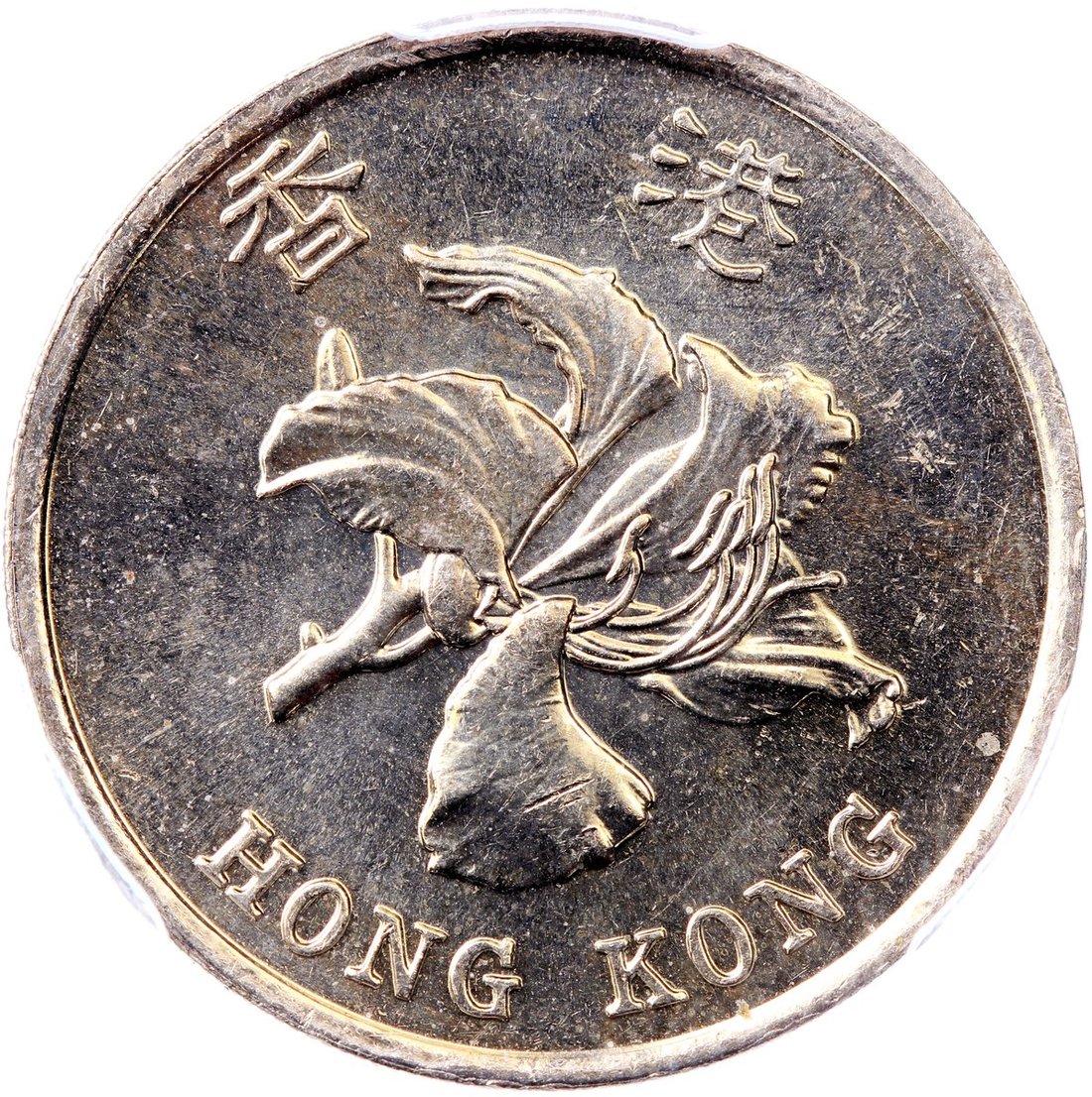 1998年香港1元錯體,背面四點鐘方向有流銅,PCGS MS63