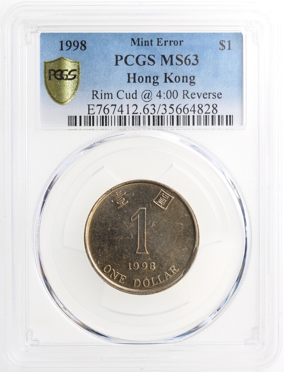 Hong Kong, copper nickel $1, 1998, MINT ERROR, rim cud at reverse 4 o'clock position, PCGS MS63