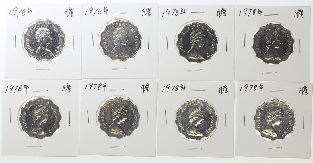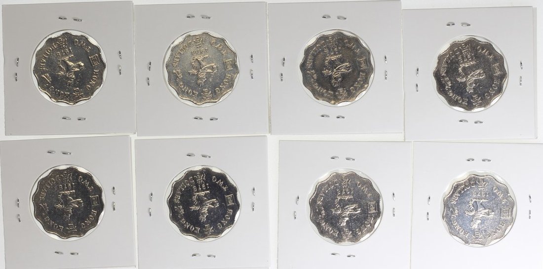 Hong Kong, group of 8x copper nickel $2, 1978, uncirculated, key date of the series (8)