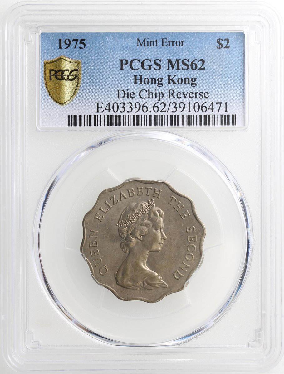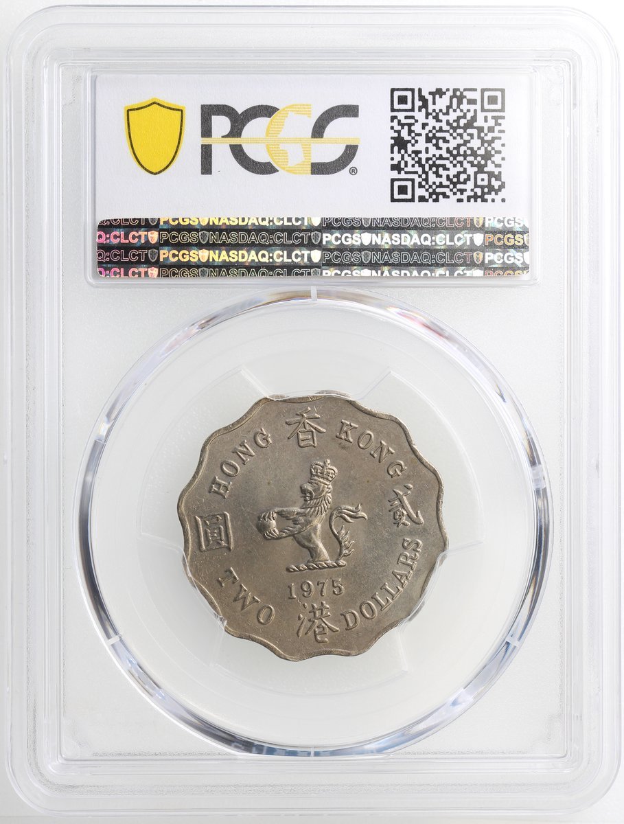 1975年香港2元,背面鑄模缺陷,PCGS MS62