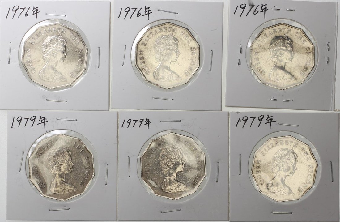 香港2元一組6枚,1976年3枚及1979年3枚,UNC