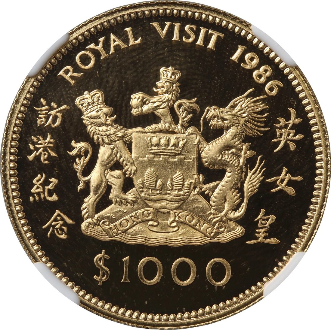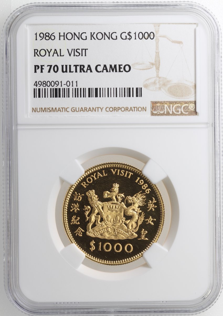 1986年英女皇訪港紀念$1000金幣,NGC PF70 Ultra Cameo,最高評級,連原裝盒