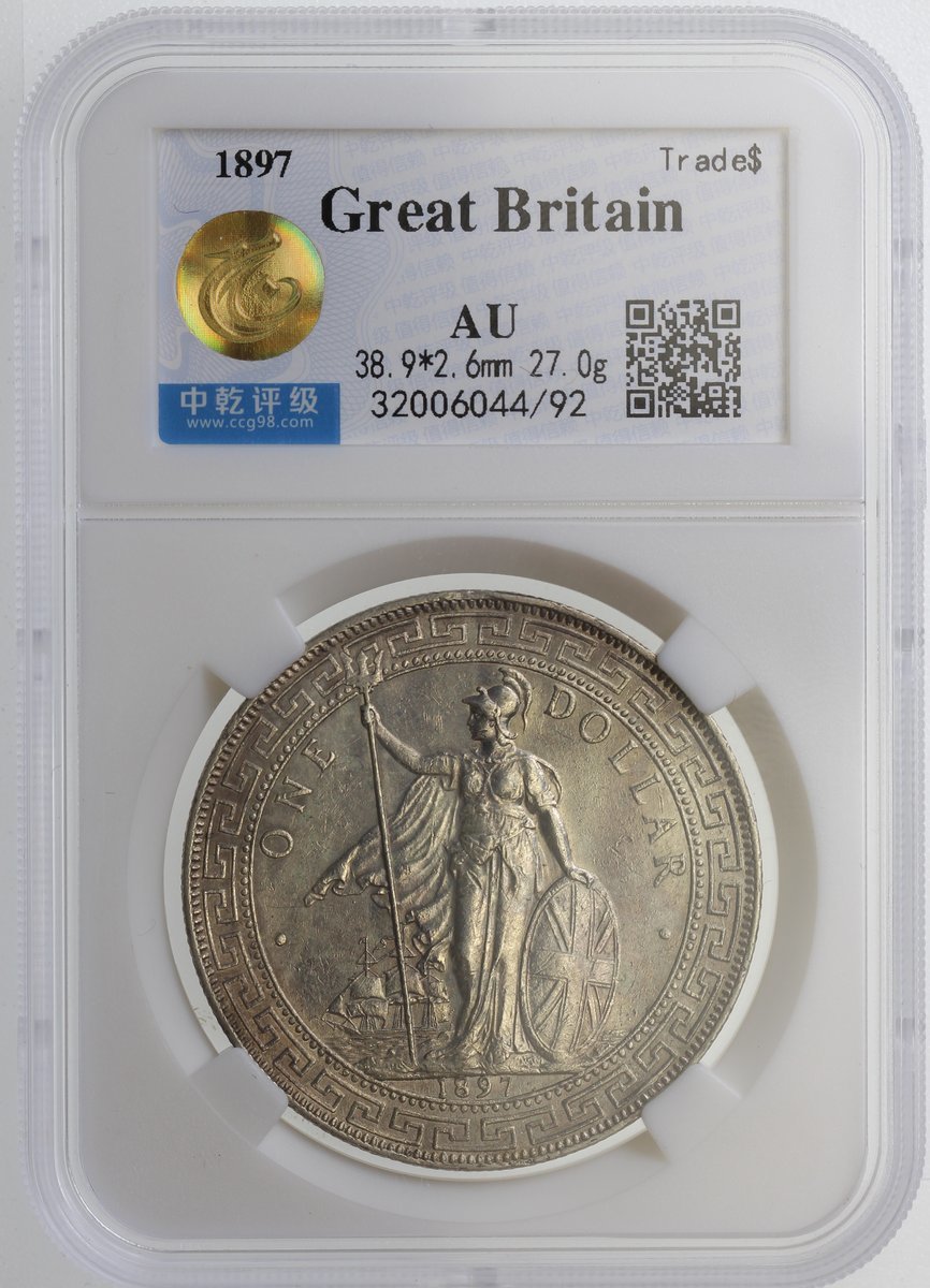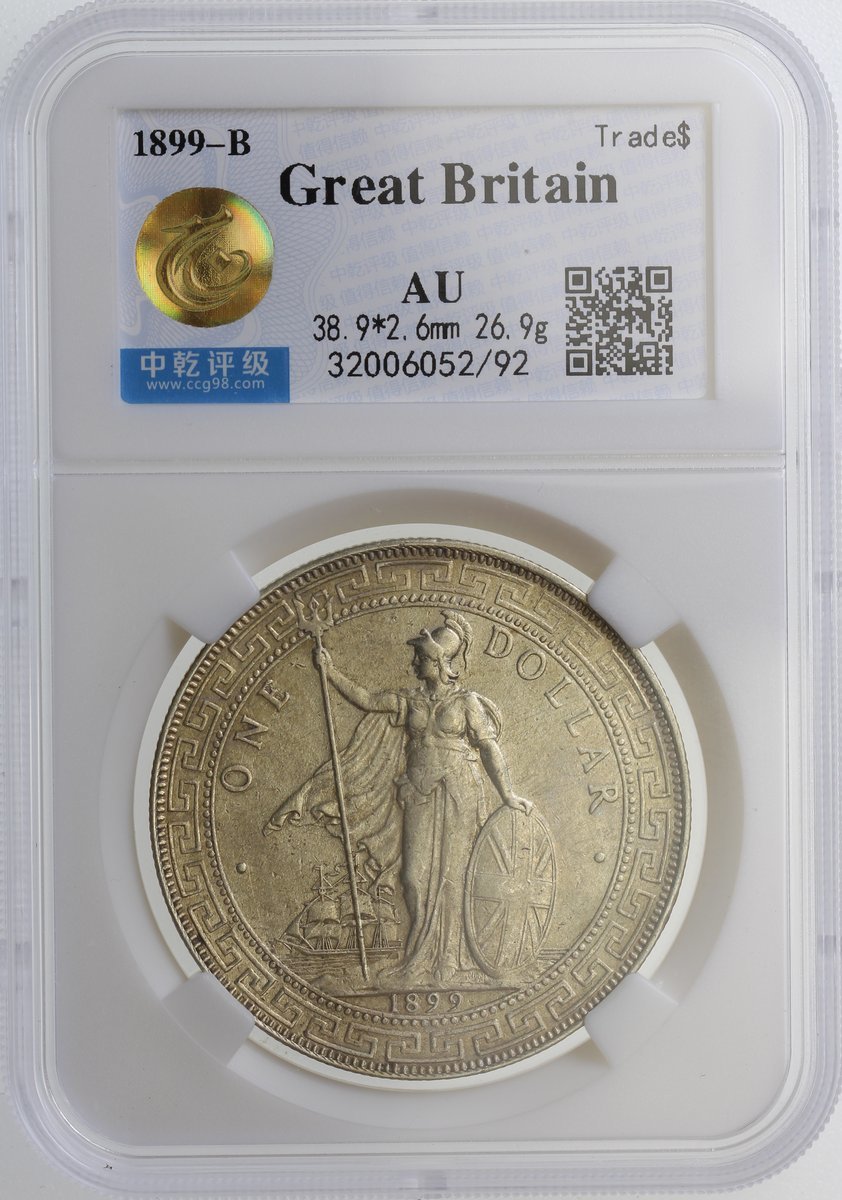 1897及 1899-B英國貿易銀元2枚,中乾評AU