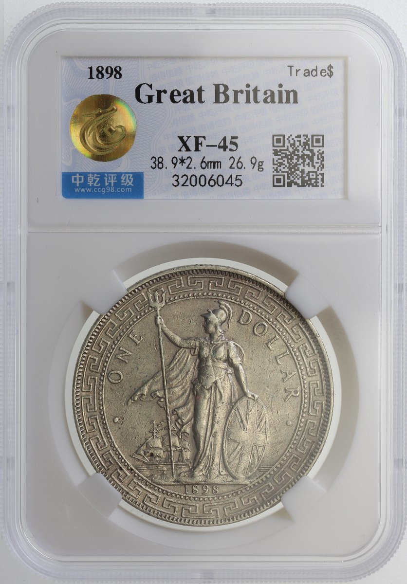 1898及 1899-B英國貿易銀元2枚,中乾分別評XF45及AU